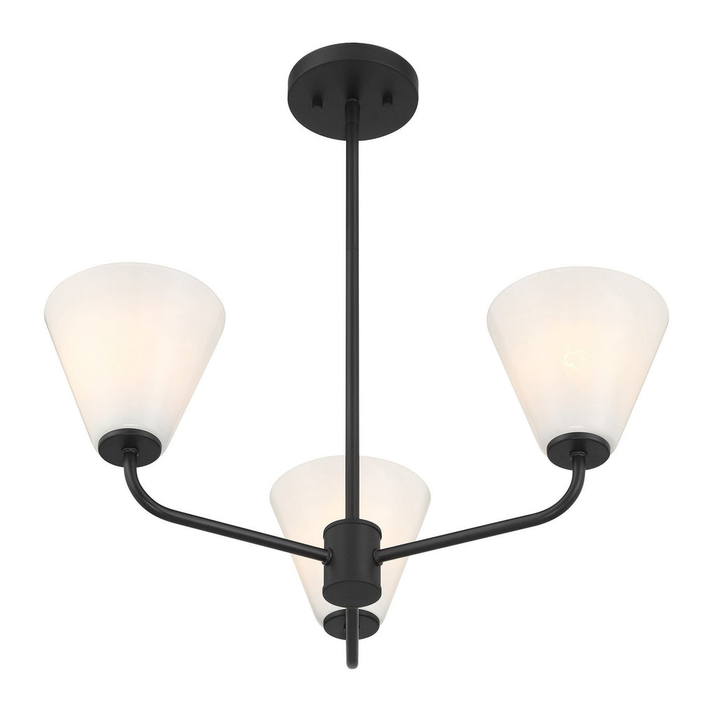 This Savoy House Blair 3-light chandelier is oh so versatile! It can be installed with the lights facing up or down, making it perfect for meeting every lighting need. Slender, sleek arms are finished in Matte Black and topped with shades of spectacularly swirling strie glass. Blair is 24" in width and has an adjustable height ranging from 9" to 63". Uses three standard size bulbs of up to 60 watts per bulb. Bulbs not included. Comes with four 12" downrods and one 6" downrod.