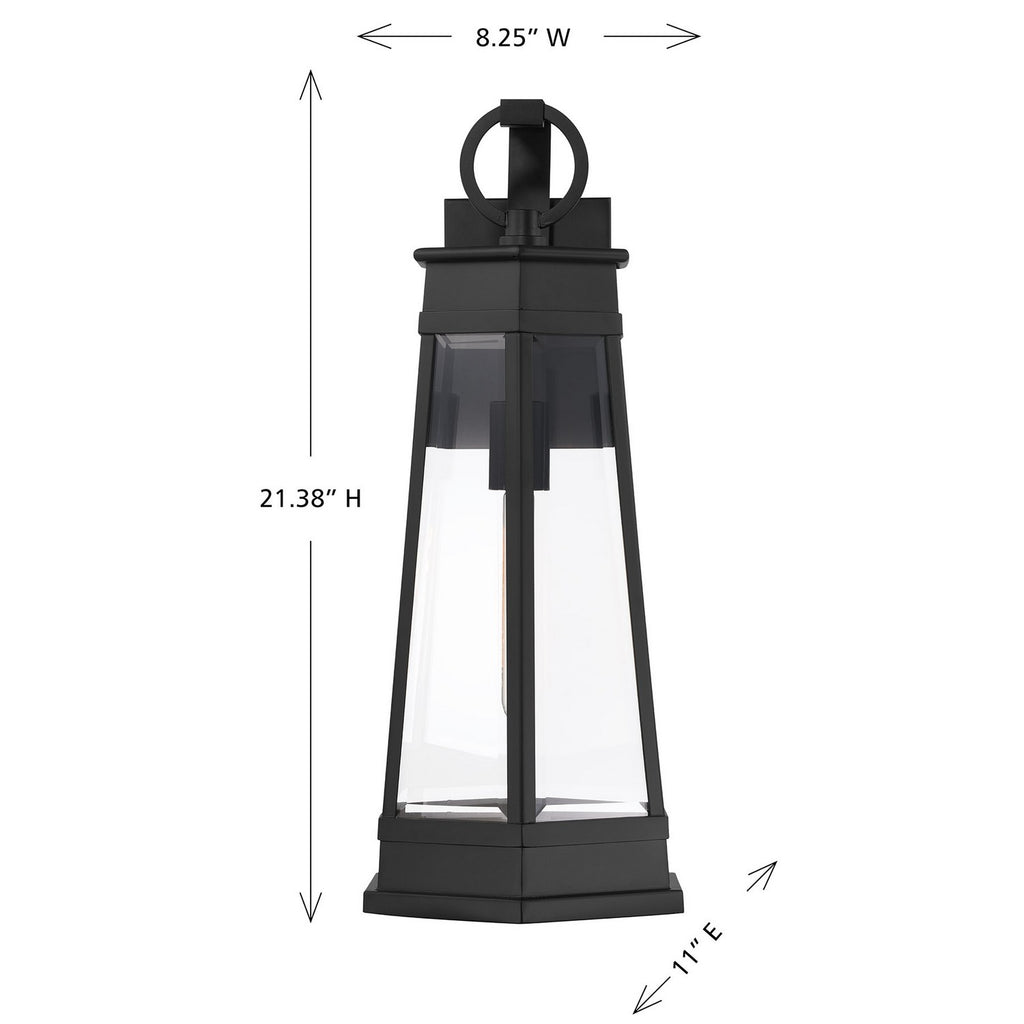 Light the way home with the terrific transitional style of the Savoy House Payne 1-light outdoor wall sconce. It has standout style thanks to panes of clear beveled glass, thoughtful geometric detailing and a versatile Matte Black finish. Use it solo or in groupings to create a great first impression. Payne is 21.38" in height, 8.25" in width and extends 11" from the wall. Uses one standard size bulb of up to 60 watts. Bulb not included. Payne is wet area rated for use in covered or uncovered outdoor areas.