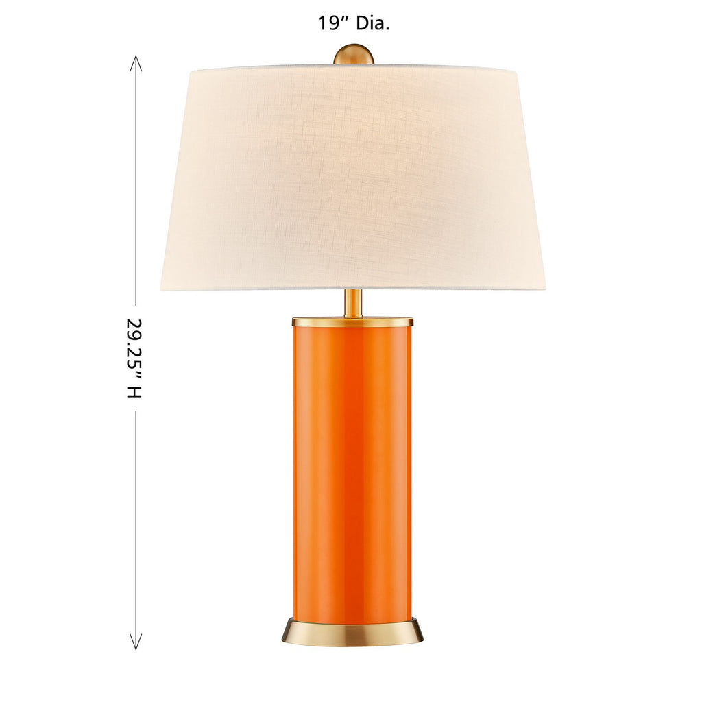 Say hello to Melissa, a table lamp from Coco & Dash that adds peppy, perky style to your home! It is fabulously finished in Exuberance Orange with a crisp white fabric shade for a bright and comfortable glow and hardware accents finished in Warm Brass for an extra touch of style. Melissa is 29.25" in height and 19" in width. It uses one standard size bulb of up to 100 watts. Bulb not included.