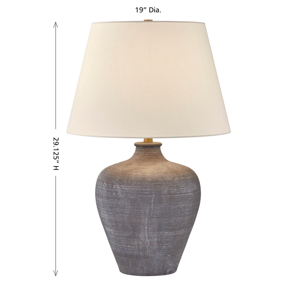 If you love iconic traditional style, you will adore this classically cool Coco & Dash Dakota table lamp. It features a crisp white fabric shade and boldly curving ceramic urn in a rich dark brown finish, creating a beautiful blend. This lamp is 29.125" in height and 19" in width. It uses one standard size bulb of up to 100 watts. Bulb not included.