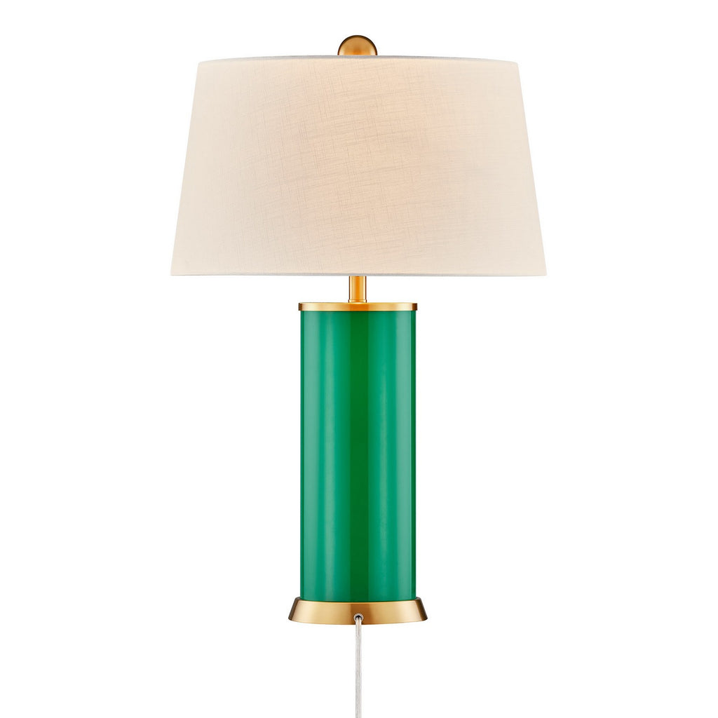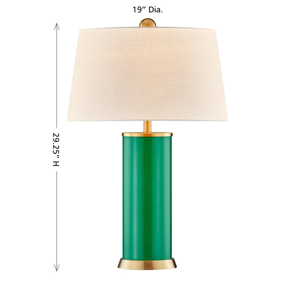 Say hello to Melissa, a table lamp from Coco & Dash that adds peppy, perky style to your home! It is fabulously finished in Jolly Green with a crisp white fabric shade for a bright and comfortable glow and hardware accents finished in Warm Brass for an extra touch of style. Melissa is 29.25" in height and 19" in width. It uses one standard size bulb of up to 100 watts. Bulb not included.