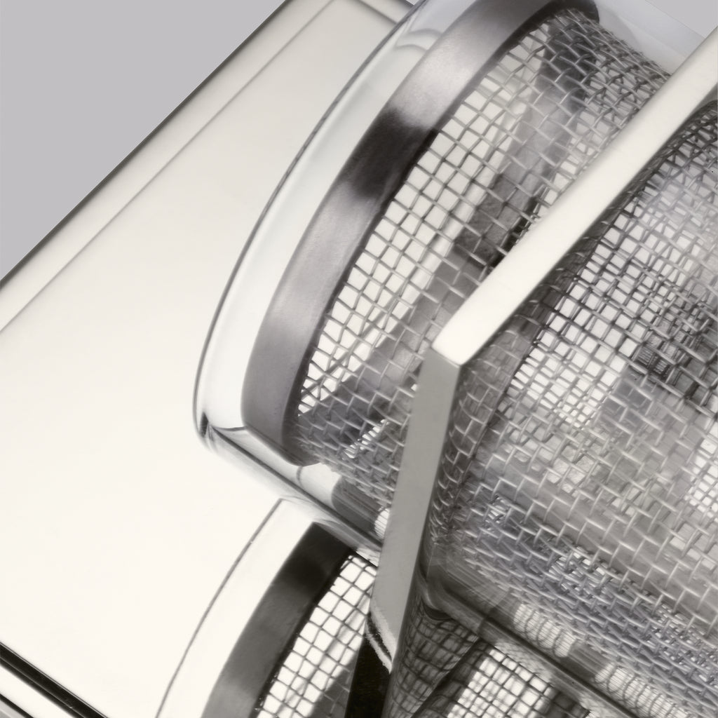 The Silo Collection of Wall Sconce lighting by makes a real statement with a vertical, cylindrical design true to its name. Silo sconces are crafted using a double-shade technique, with clear glass on the outer shade and a metal mesh lining on the inner shade. A square base and "arm" with clean, seamless edges hold the glass in place. Silo wall sconces are available in two finishes: a more contemporary Polished Nickel finish or a more gilded Antique Bronze finish. Silo 1-light wall sconces measure 15"H x 4.75"W and extend 4" out from the wall, making it ADA compliant. Silo is a matching fixture to the Bluffton Collection, but is versatile enough to be used in many types of decor.