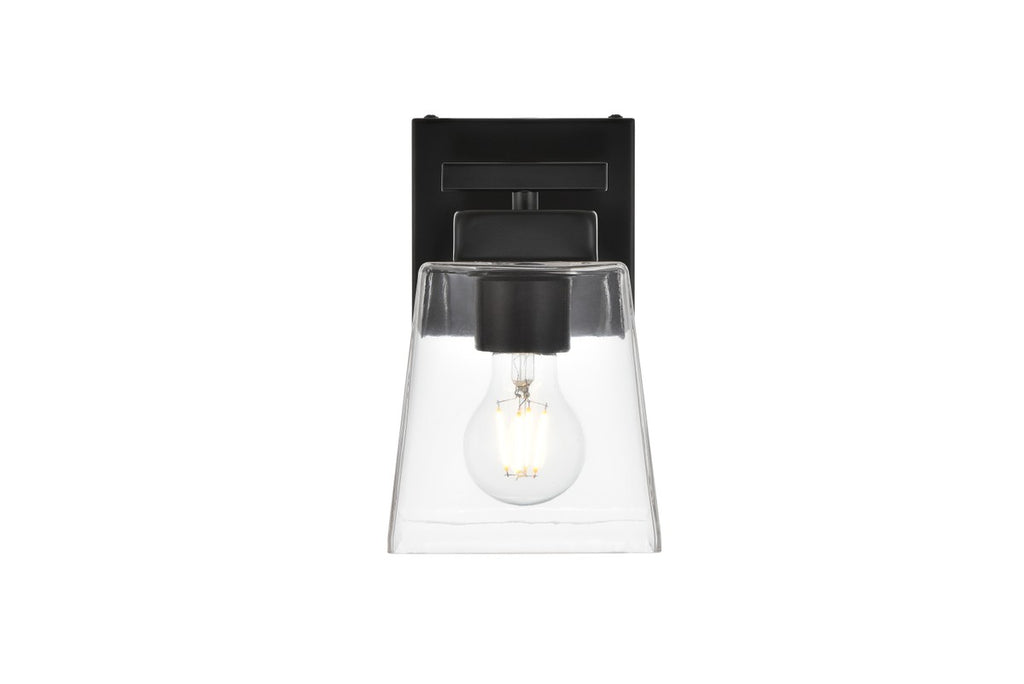 Defined by a sleek metal arm extends to suspend the clear bell glass shade. A contemporary stunner, it shows off the straight line details from the backplate and the streamline thin metal arm. Compatible with dimmers, so you'll have the right amount of light in any given time of the day. Completely versatile, you can place this wall light as an uplight or downlight. Rated for use in damp locations, this will work perfectly over a vanity in your bathroom.