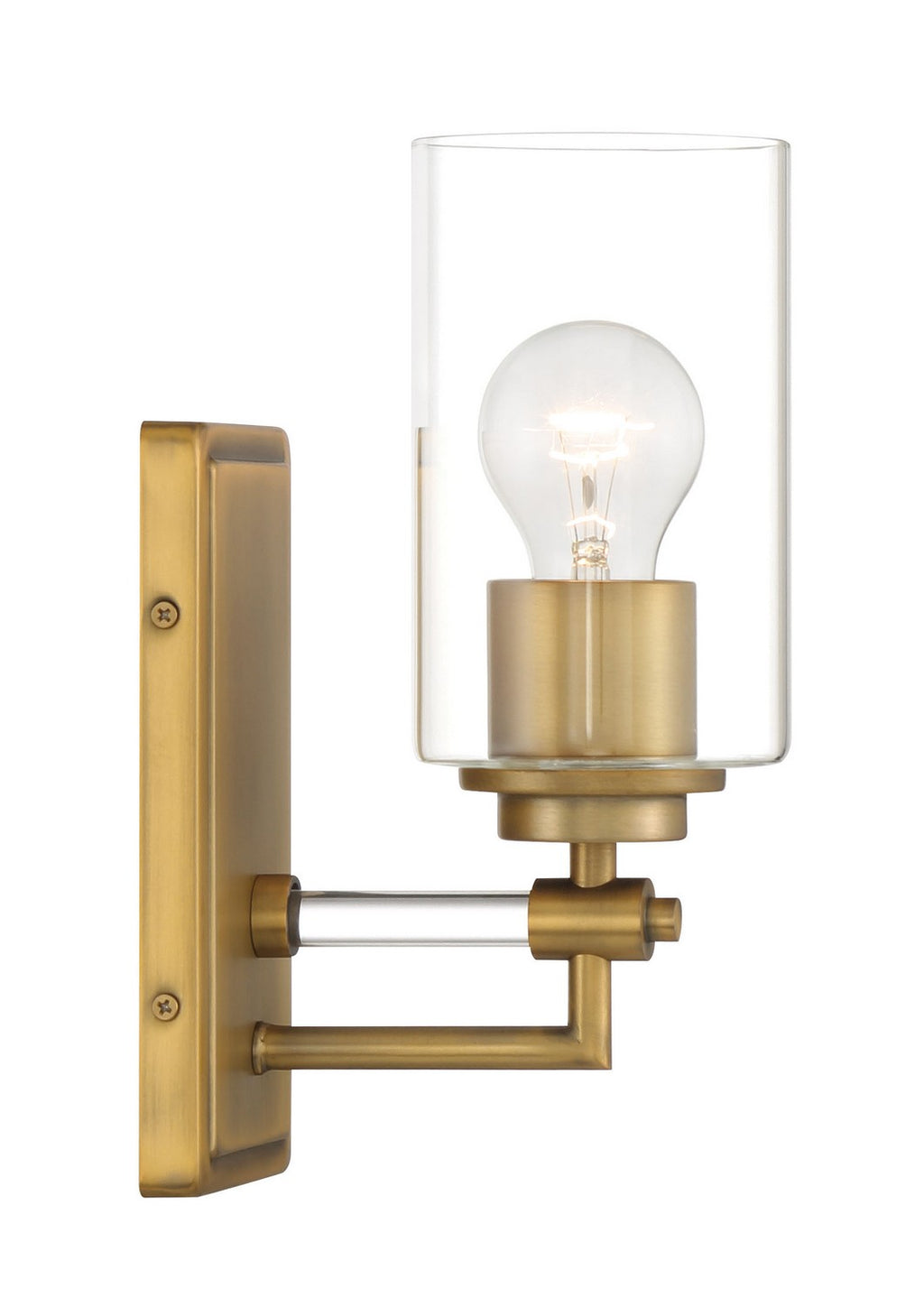 1 Light Bath Vanity in Aged Brass, Reversible, with Clear Glass