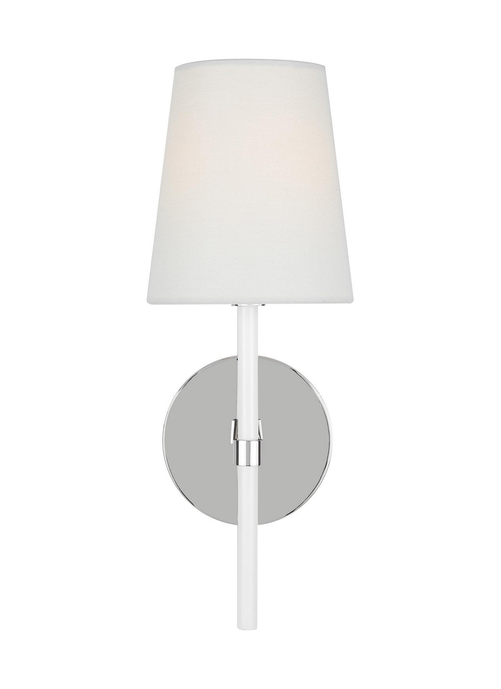 The Monroe one light sconce is inspired by graphic enameled metal jewelry and decorative accessories from kate spade with a nod to late 50s atomic era colorful designs. Monroe exhibits clean lighting profiles and dressed them up with painted sections and metal accents.