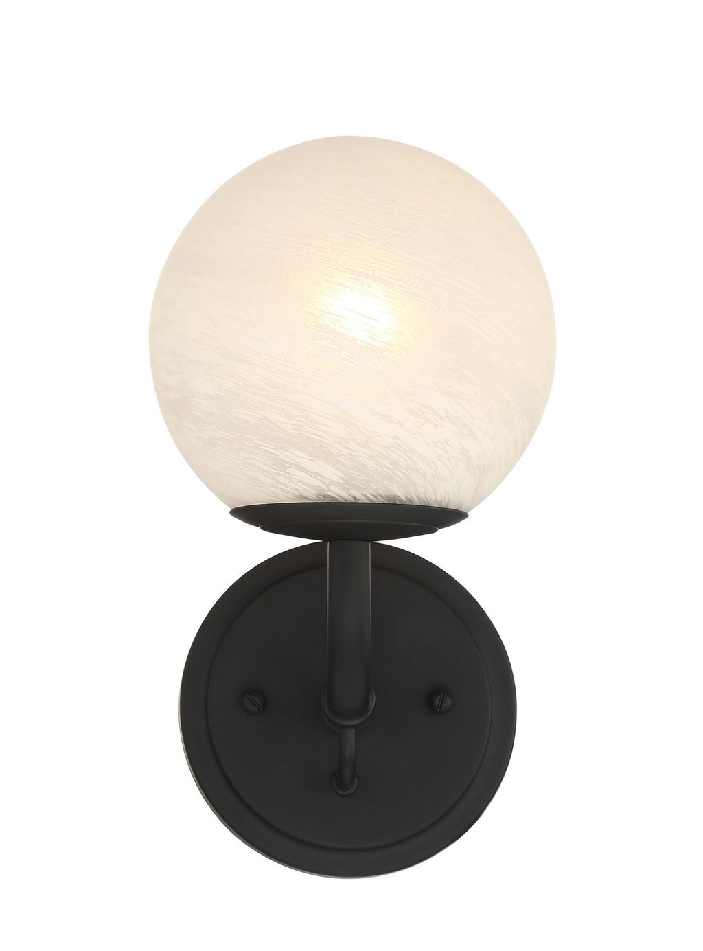 1-Light Vanity - Dark Matte Black with Etched Alabaster Glass