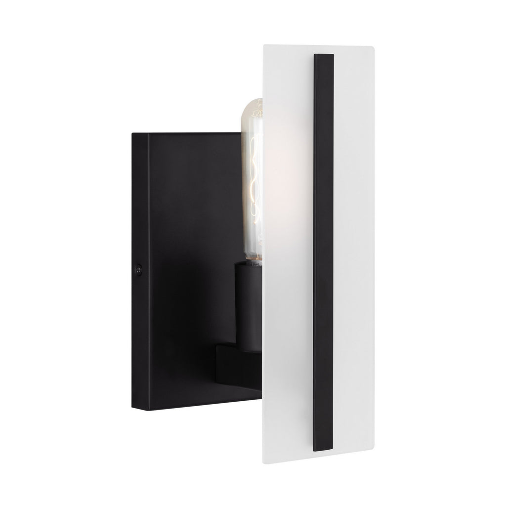 The Dex one light wall sconce in Midnight Black is a contemporary design with three finishes and white acrylic diffuser creating a crisp look and bright clean ambiance. With the clean lines and classic styling, the Dex vanity series is versatile enough to be used in any transitional setting.