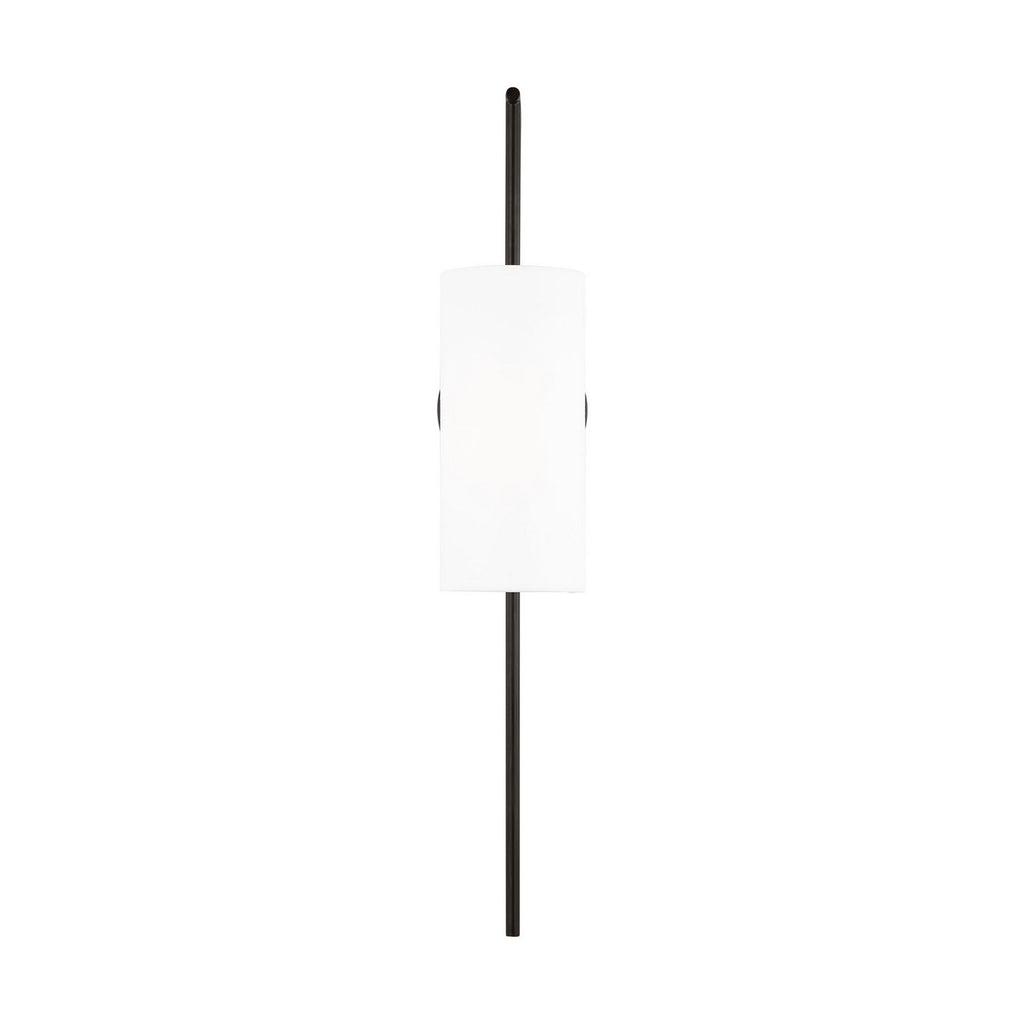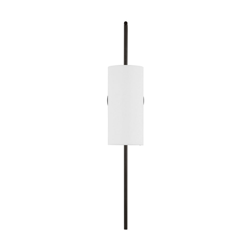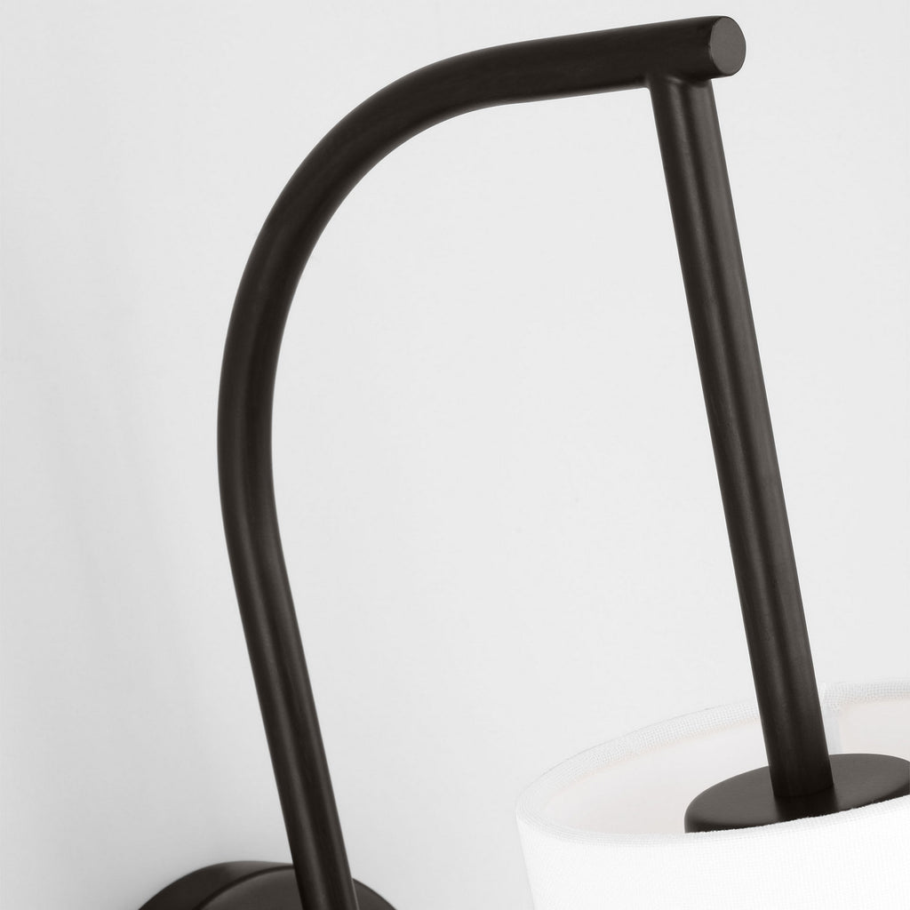 The Lowell wall sconce by Ellen DeGeneres has a mixed-material look that brings the perfect amount of coastal and farmhouse style to your bedroom or bathroom. The arm connects to a crisp white fabric shade in a cylinder shape that disperses light from a 60W bulb (not included).