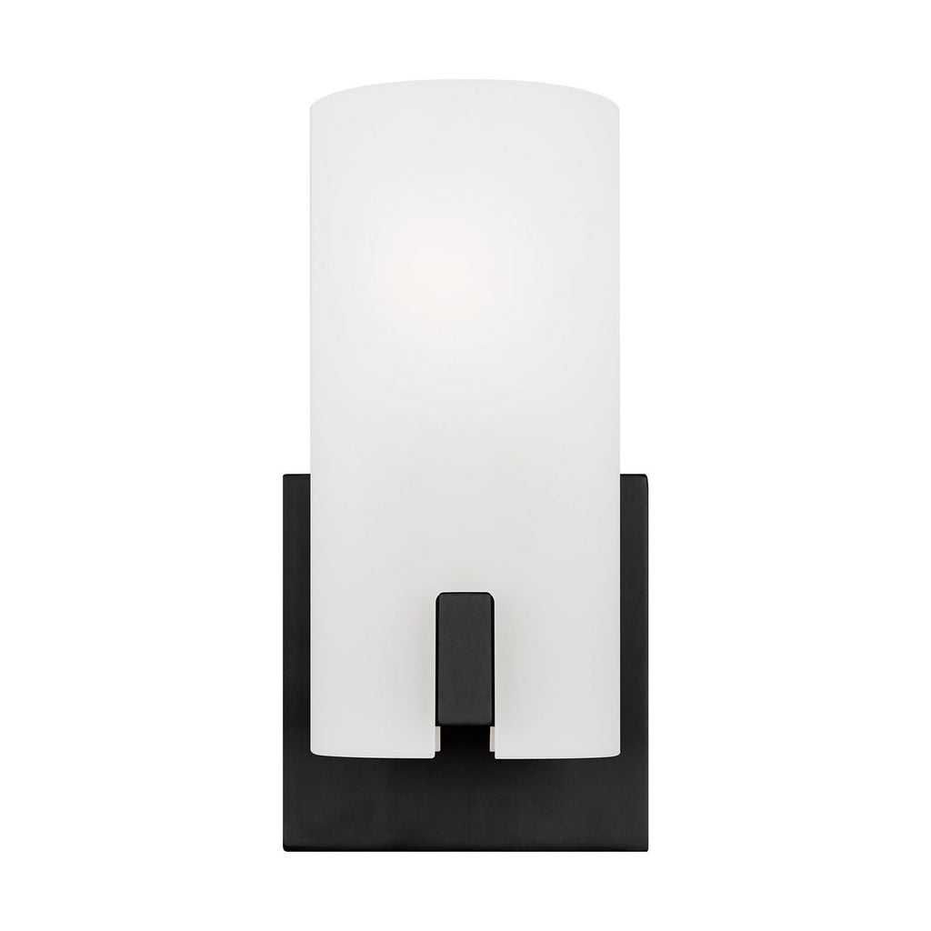 Rhode by Drew & Jonathan is a classic design with clean lines and white milk glass shades, perfect for farmhouse or transitional style settings. It's made from metal, featuring a wagon wheel body on the chandelier and a square backplate on the wall sconce. The overall style and multiple finishes work as well in a modern-farmhouse kitchen as they do in a vintage industrial loft.