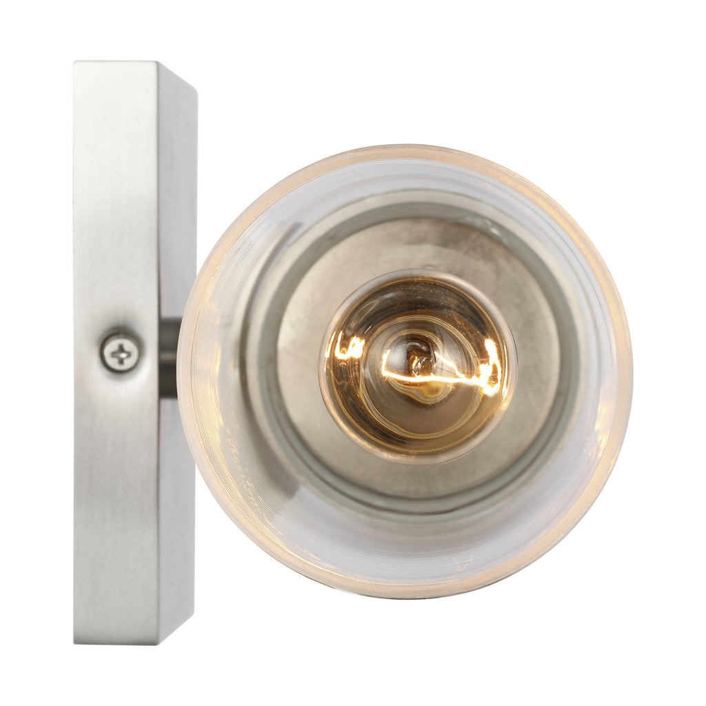 Modern aesthetic meets textural detail in the Sarita sconce by Drew & Jonathan. Ribbed glass completes the streamlined cylindrical forms while diffusing light and elegantly contrasting the bold square backplate. This sophisticated sconce will lend a subtle industrial accent and is ideal for bathrooms.