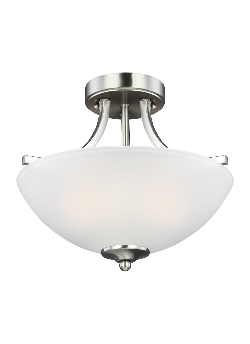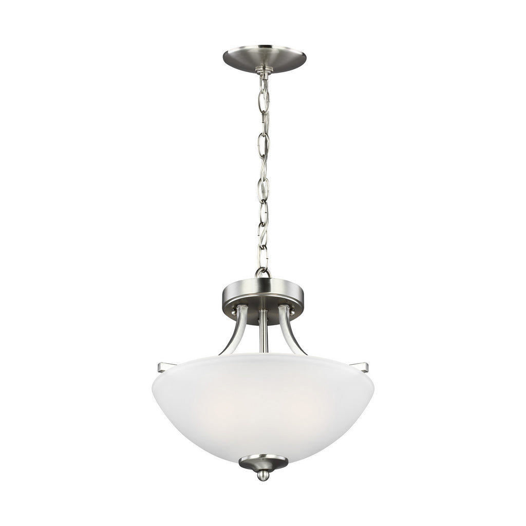 The Geary two light indoor semi-flush convertible in brushed nickel is the perfect way to achieve your desired fashion or functional needs in your home. Adaptability takes center stage with the Geary Collection. This series of traditional up-light pendants, semi-flush and flush-mount fixtures feature decoratively bowed arms and constructed of rectangular steel tubing. Geary is a true cross-collection piece, offered in four beautiful finishes Blacksmith, Brushed Nickel, Burnt Sienna and Heirloom Bronze. The Geary has a universal appeal matching 24 different interior collections. Offering subtle style with practical design, Geary is at home in almost any room. The fixtures have a fluid movement with a traditional look to complement a wide range of decor.