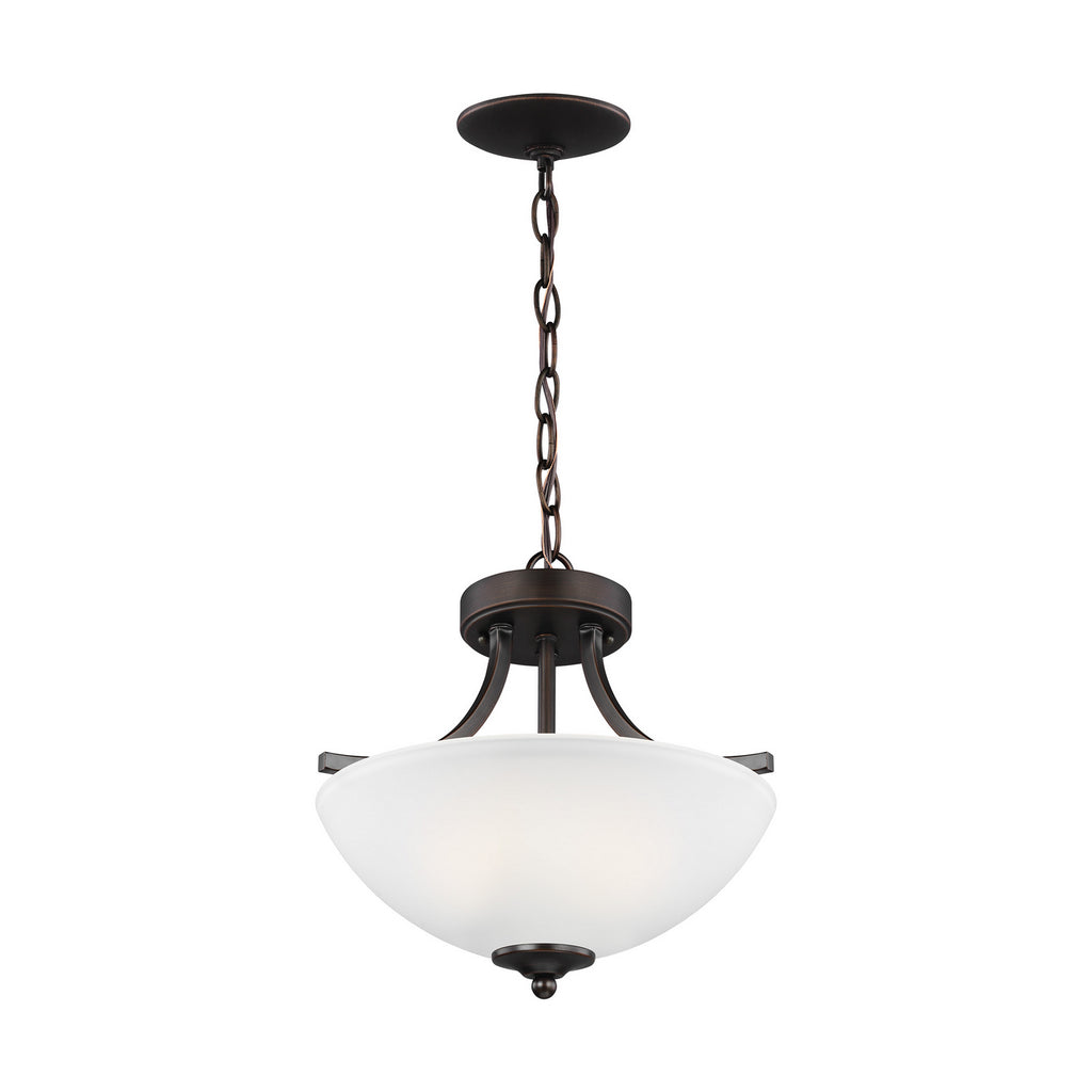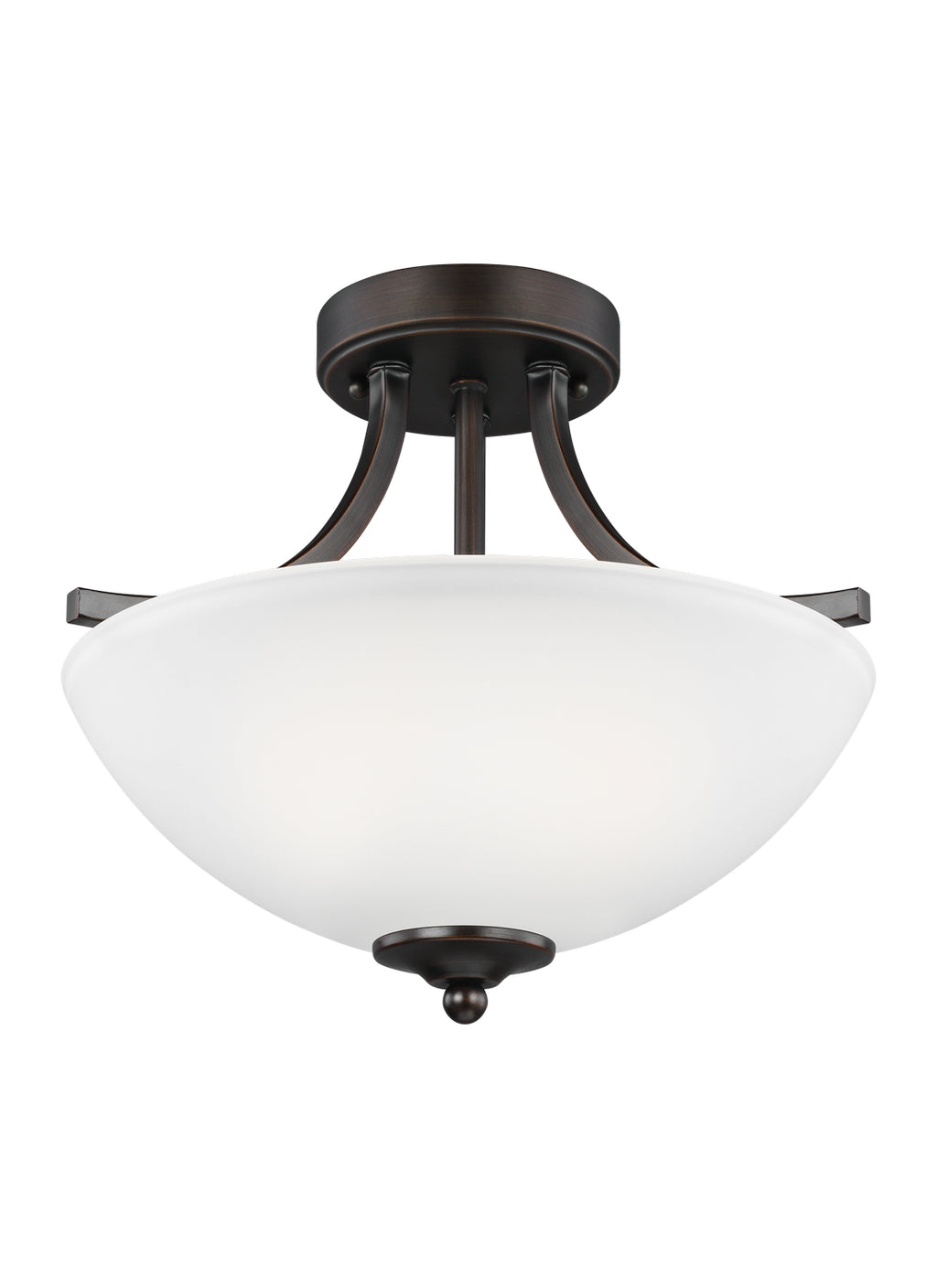 The Geary two light indoor semi-flush convertible in bronze is an ENERGY STAR qualified lighting fixture that uses LED bulbs to save you both time and money. Adaptability takes center stage with the Geary Collection. This series of traditional up-light pendants, semi-flush and flush-mount fixtures feature decoratively bowed arms and constructed of rectangular steel tubing. Geary is a true cross-collection piece, offered in four beautiful finishes Blacksmith, Brushed Nickel, Burnt Sienna and Heirloom Bronze. The Geary has a universal appeal matching 24 different interior collections. Offering subtle style with practical design, Geary is at home in almost any room. The fixtures have a fluid movement with a traditional look to complement a wide range of decor.