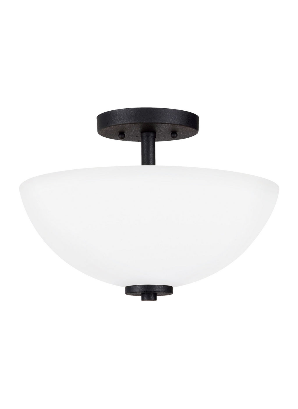 The Oslo two light semi flush fixture in midnight black is an ENERGY STAR qualified lighting fixture that uses LED bulbs to save you both time and money. The Oslo lighting collection by is a sleek design, with smooth and clean lines. The Opal Etched glass adds to this collection's contemporary and minimalist character. Offered in Chrome, Brushed Nickel, Burnt Sienna and textured Blacksmith finishes, the collection includes nine-, five-, and three-light chandeliers, pendants in four sizes, both flush and semi-flush ceiling fixtures, as well as one-, two-, three- and four-light wall/bath fixtures. Both incandescent lamping and ENERGY STAR-qualified LED lamping are available. All fixtures are California Title 24 compliant.