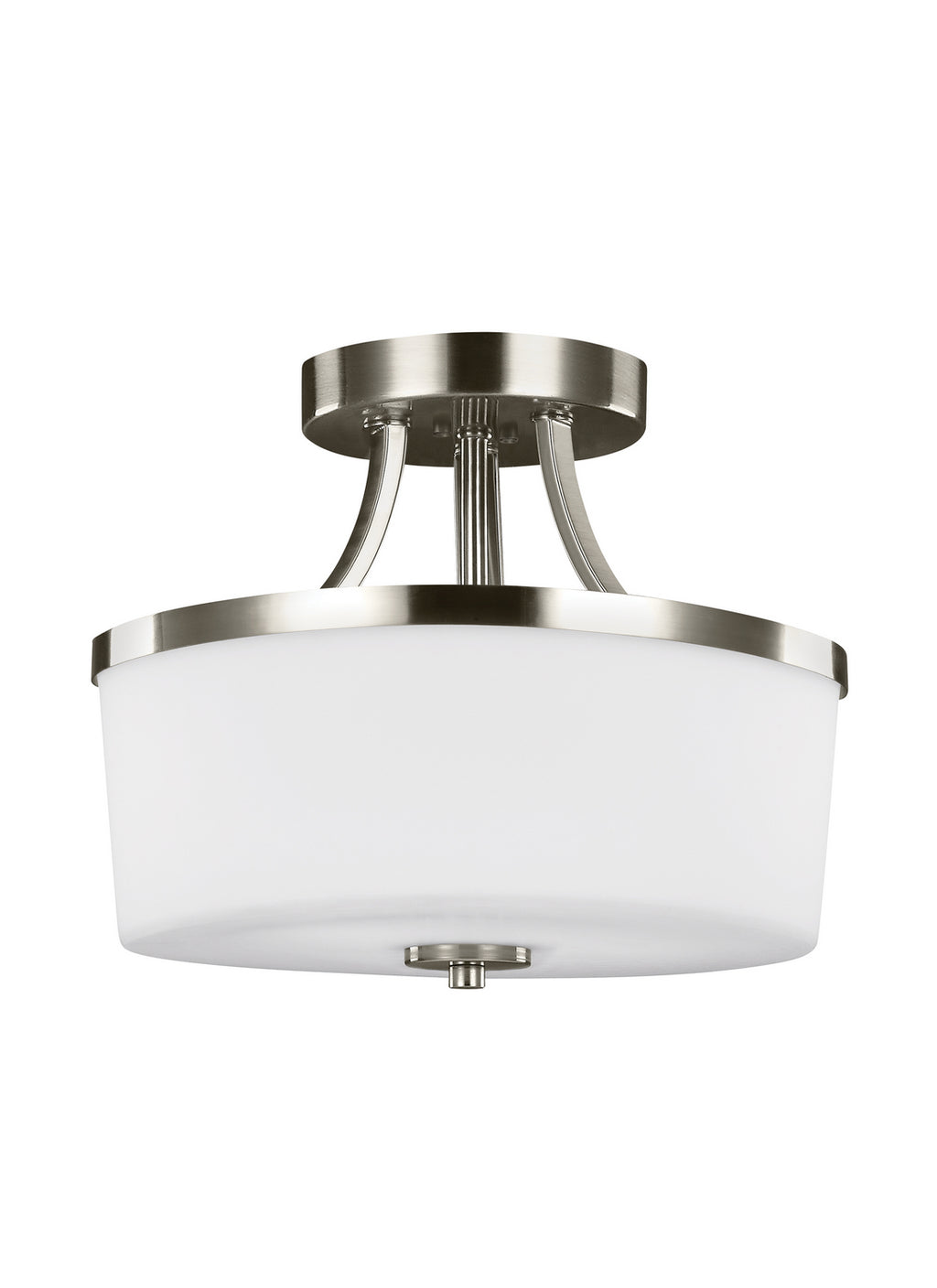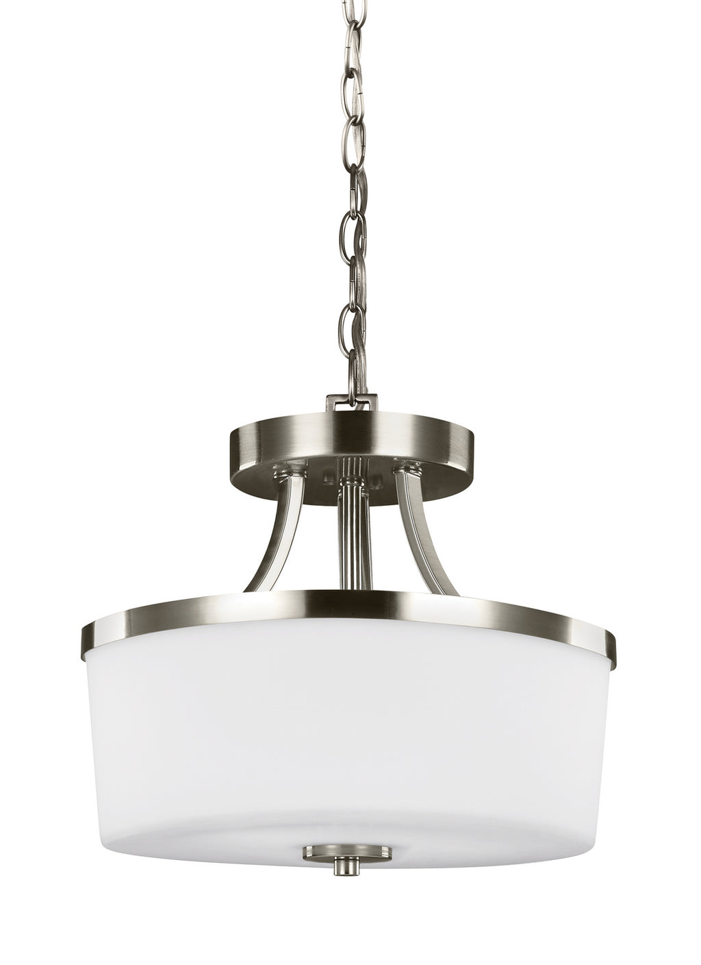 The Hettinger two light indoor semi-flush convertible in brushed nickel enhances the beauty of your home with ample light and style to match today's trends. The Hettinger lighting collection by combines a traditional look with chic, modern charm. The minimalism of the tubular glass shades balances with the unique, outward-curve of the semi-circular arm detail. It's available in three finishes - Burnt Sienna and Brushed Nickel for the whole collection, and Chrome for the bath vanities. The assortment includes six- and nine-light chandeliers, a one-light wall sconce, two-, three- and four-light bath vanity fixtures, a three-light pendant and two- light semi-flush convertible pendant. Incandescent and ENERGY STAR-qualified LED lamping are available, all fixtures are California Title 24 compliant.