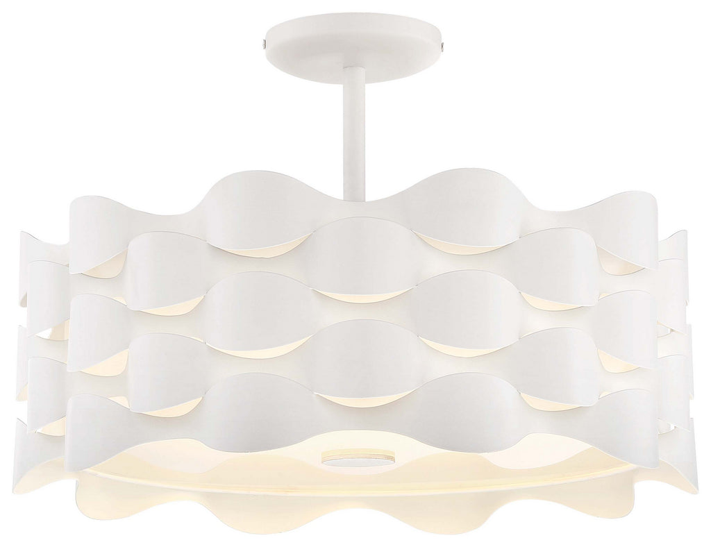 LED Semi Flush in Sand White Finish with Metal Shade and an Interior White Linen Shade and Etched White Glass Diffuser