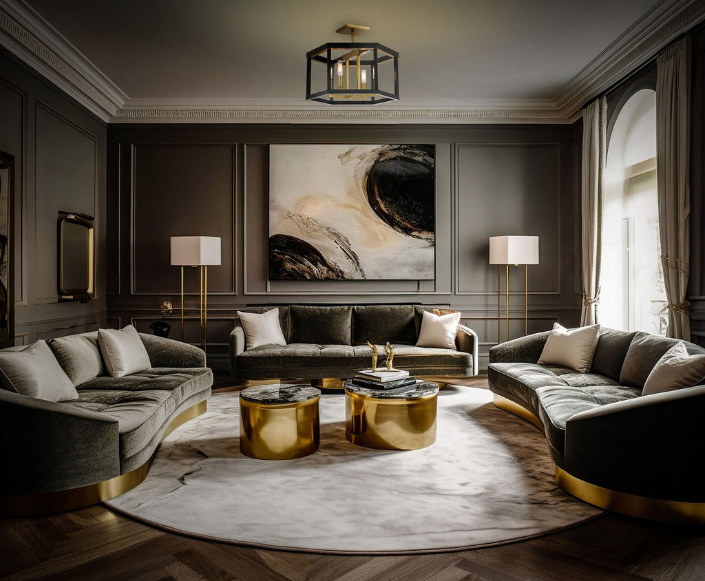 4 Light Semi Flush in Coal and Soft Brass Finish
