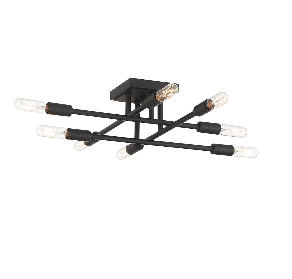 The open, structured look of the Savoy House Lyrique 8-light ceiling semi-flush mount is a great choice for today's stylish interiors. Finished in matte black. Semi-flush mounts can be used on the ceiling of pretty much any interior room, including foyers, hallways, stairways, closets, bathrooms, bedrooms, kitchens and more! Bulbs not included. Try using stylized bulbs like Edison or tubular for a different look! The finish can be matched with black hardware or mixed with hardware in other finishes. Lyrique is perfect for contemporary style spaces and any room that has an edgy touch. When you choose a Savoy House lighting fixture, you can be certain you've selected a piece that will withstand the test of time.