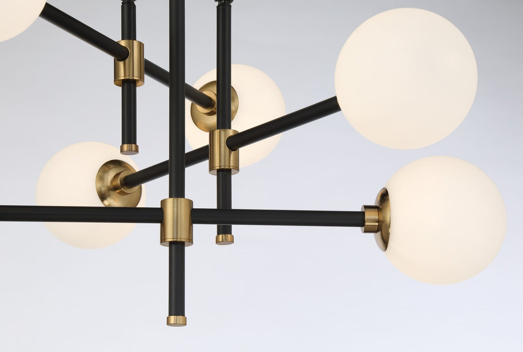 6 Light Flush Mount in Coal and Aged Brass Finish with Etched Opal Glass