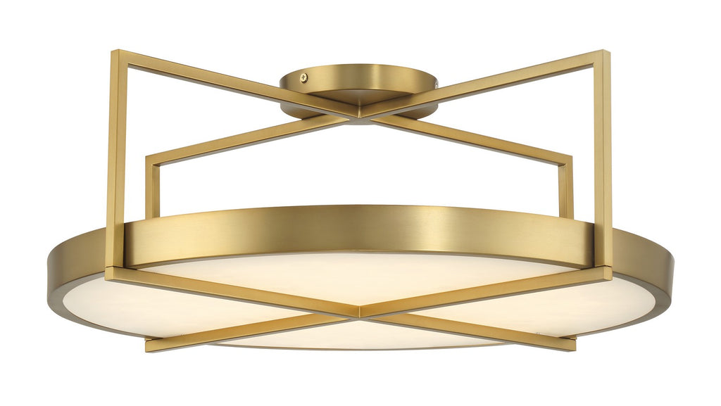 9" LED Semi Flush in Soft Brass Finish with White Faux Alabaster