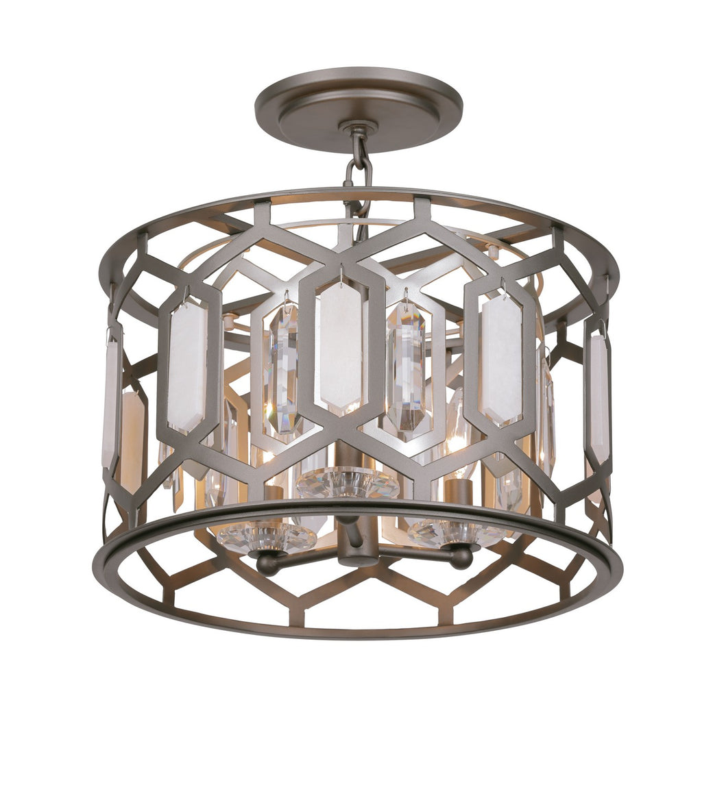 3 Light Semi Flush Convertible to Pendant in Bronze and Sultry Silver with Clear Crystal and Alabaster Stone Accents