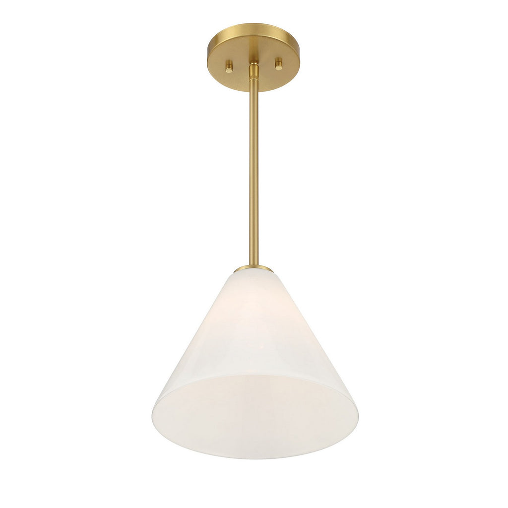 This Savoy House Blair 1-light mini pendant is oh so versatile! It can be installed as a hanging pendant or as a ceiling semi-flush mount, making it perfect for meeting every lighting need. It is finished in Warm Brass and holds a shade of spectacularly swirling strie glass. Blair is 10" in width and has an adjustable height ranging from 7.75" to 37.25". Uses one standard size bulb of up to 60 watts. Bulb not included. Comes with three 9.5" downrods.