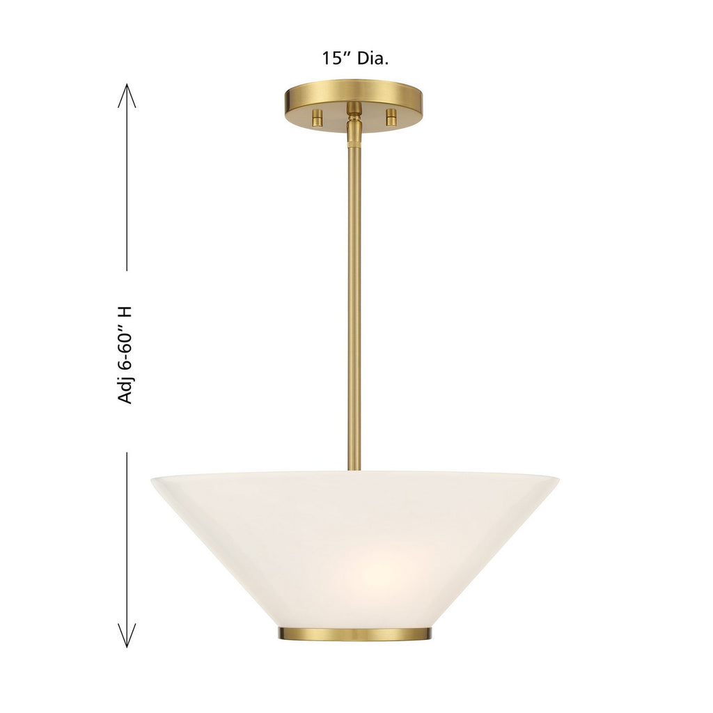 This Savoy House Blair 3-light pendant is oh so versatile! It can be installed as a hanging pendant or as a ceiling semi-flush mount, making it perfect for meeting every lighting need. It is finished in Warm Brass and holds a shade of spectacularly swirling strie glass. Blair is 15" in width and has an adjustable height ranging from 6" to 60". Uses three candelabra size bulbs of up to 60 watts per bulb. Bulbs not included. Comes with four 12" downrods and one 6" downrod.