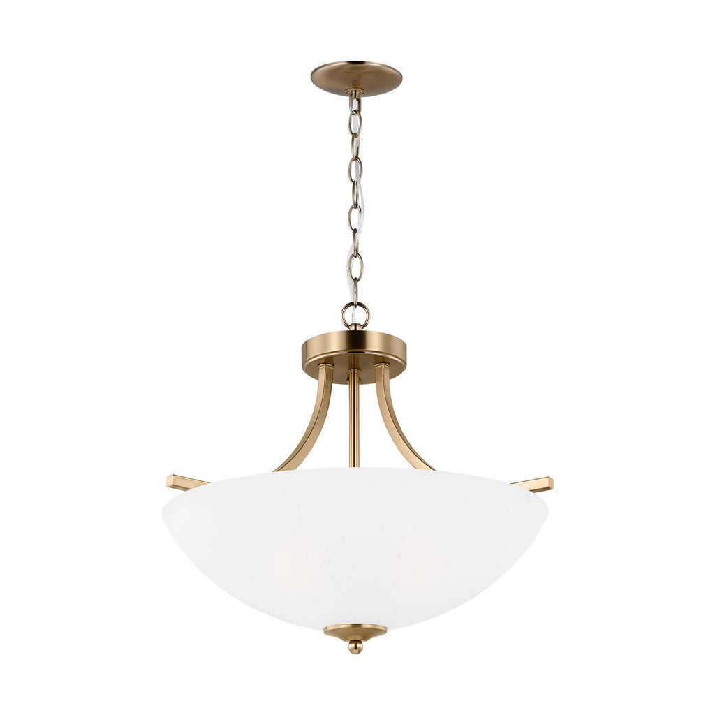 The Geary three light indoor semi-flush convertible in Satin Brass supplies ample lighting for your daily needs, while adding a layer of today's style to your home's décor. Adaptability takes center stage with the Geary Collection. This series of traditional up-light pendants, semi-flush and flush-mount fixtures feature decoratively bowed arms and constructed of rectangular steel tubing. Geary is a true cross-collection piece, offered in four beautiful finishes Midnight Black, Brushed Nickel, Bronze and Satin Brass. The Geary has a universal appeal matching 24 different interior collections. Offering subtle style with practical design, Geary is at home in almost any room. The fixtures have a fluid movement with a traditional look to complement a wide range of decor.