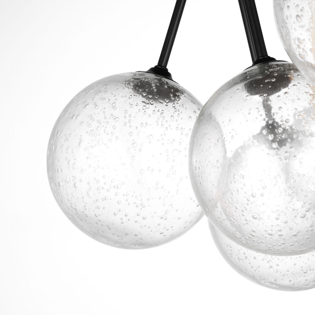 Bronzeville brings a daring, upscale element of mid-century modern design to any space. Hand-blown, Seeded Glass globes encircle warm, glowing filament lamps, diffusing the light to create a serene ambiance of light and shadow.