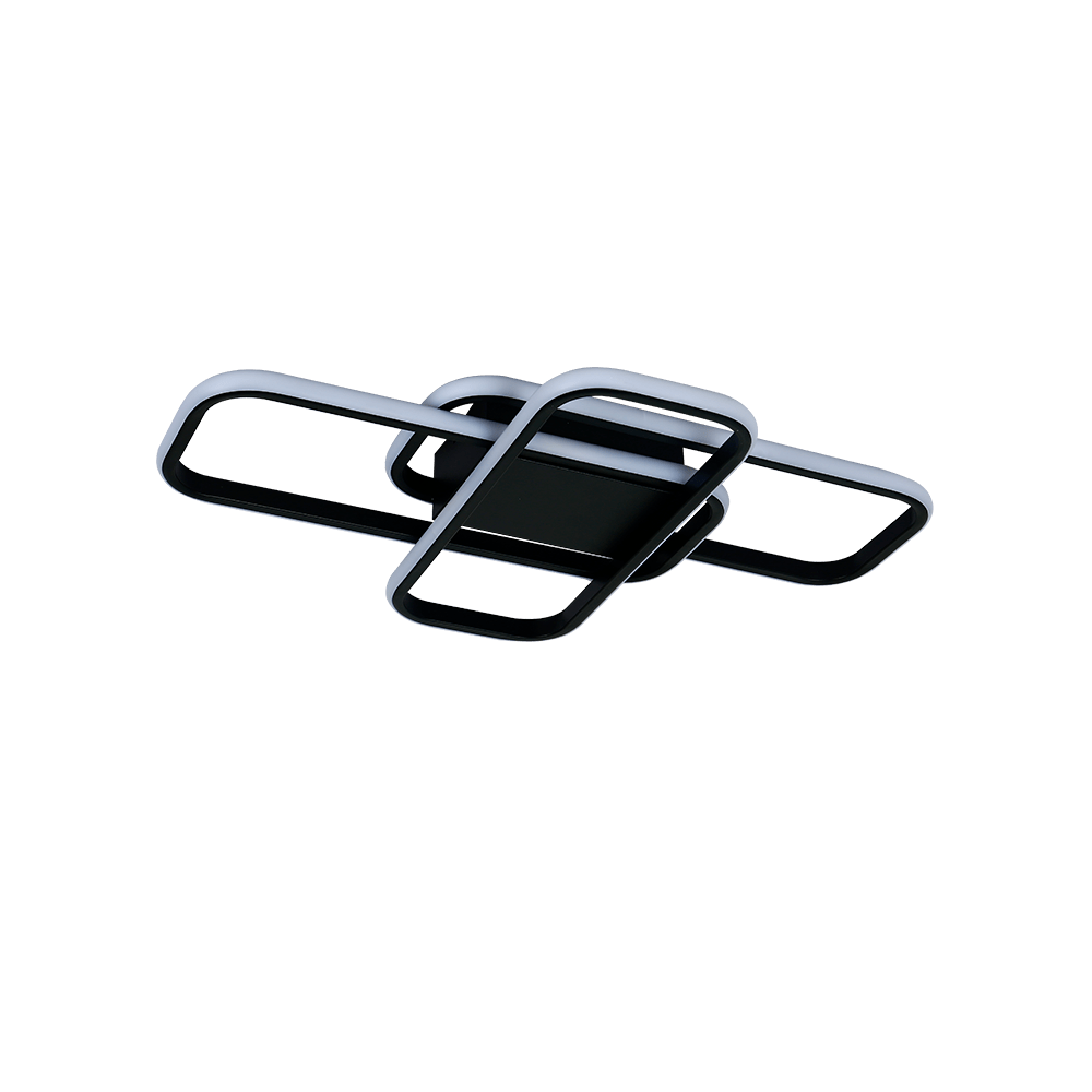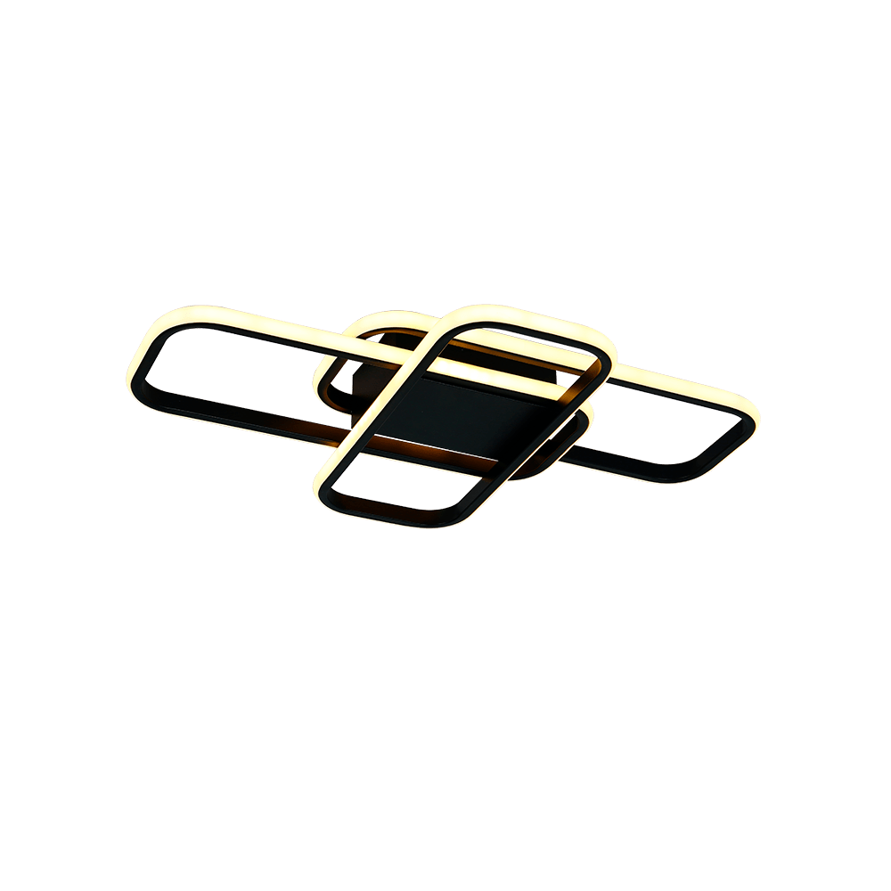 LÁMPARA DE TECHO DECORATIVA LED 42W, INTERRUPTOR PARA ELEGIR TONALIDAD DE LUZ-CCT 30K,40K,60K, 110-240V, 50-60HZ, GRADO DE PROTECCION IP20, ACABADO NEGRO + MATERIAL METAL, DIMENSIONES: L-55CM W-35CM H-7.5CM, MARCA HOME DELIGHT.