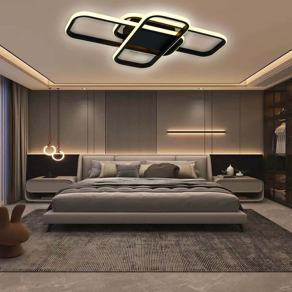 LÁMPARA DE TECHO DECORATIVA LED 42W, INTERRUPTOR PARA ELEGIR TONALIDAD DE LUZ-CCT 30K,40K,60K, 110-240V, 50-60HZ, GRADO DE PROTECCION IP20, ACABADO NEGRO.