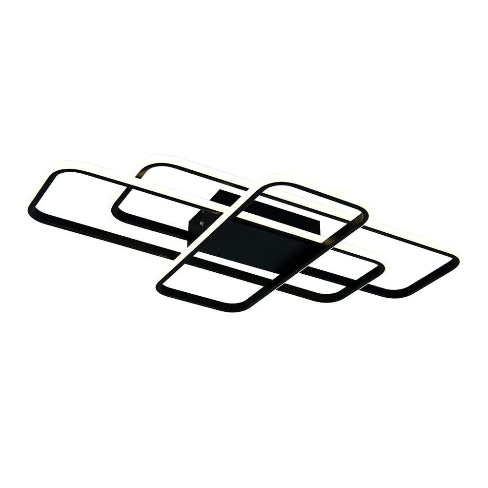 LÁMPARA DE TECHO DECORATIVO LED 62W, INTERRUPTOR PARA ELEGIR TONALIDAD DE LUZ CCT: 30K,40K,60K, 110-240V, 50-60HZ, GRADO DE PROTECCION IP20, ACABADO NEGRO, DIMENSIONES: L-75CM W-45CM H-7.5CM, MARCA HOME DELIGHT.