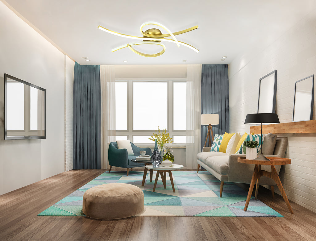 LÁMPARA DE TECHO DECORATIVA LED 55W, TONALIDAD DE 3000K, 110-240V, 50-60HZ, GRADO DE PROTECCION IP20, ACABADO DORADO + METAL + SILICONA, DIMENSIONES: L-80CM W-34CM H-9CM, MARCA HOME DELIGHT.