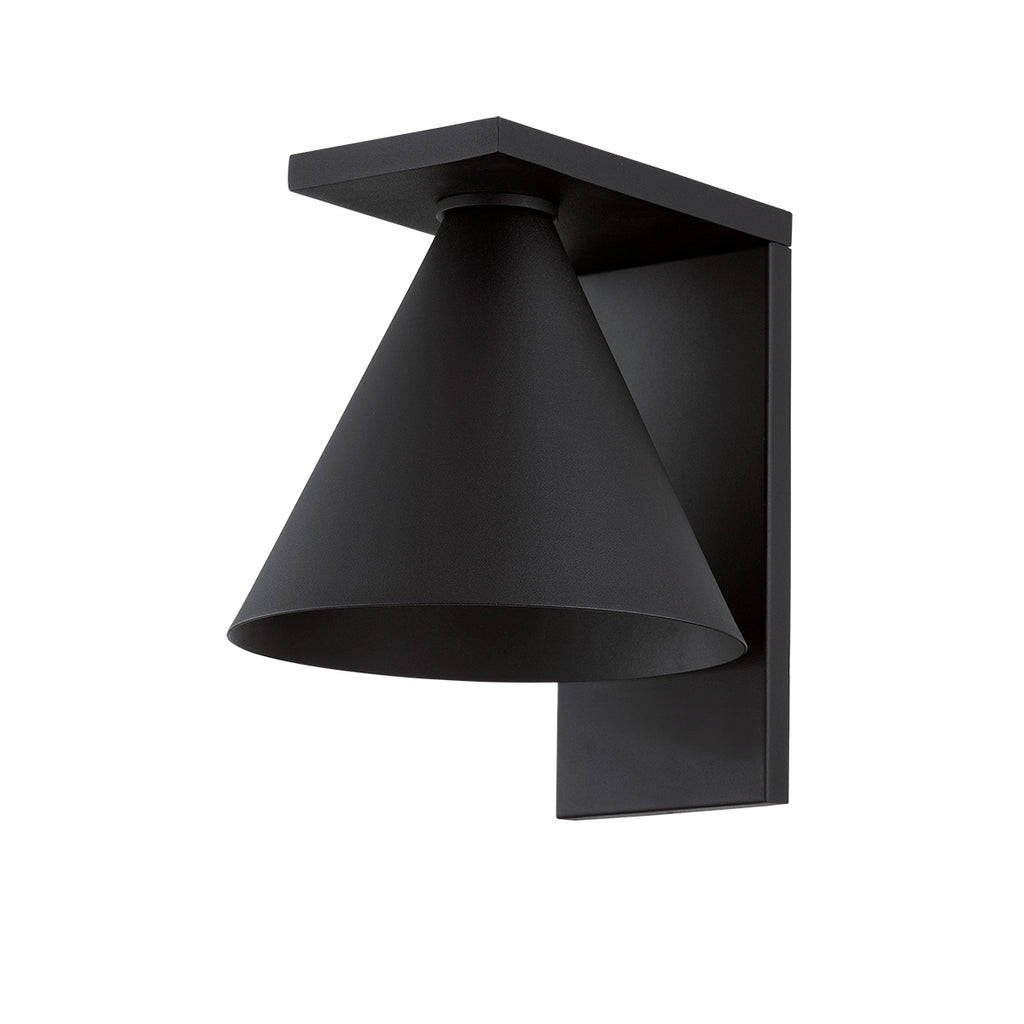 A conical shade is suspended like a bell from an L-shaped backplate in the streamlined Sean. The minimalist construction of the sconce, paired with an all-over Textured Black finish, creates a versatile and highly functional fixture for exterior use. Available in two sizes, Sean is designed to comply with Dark Sky requirements, prioritizing a reduction of light pollution.