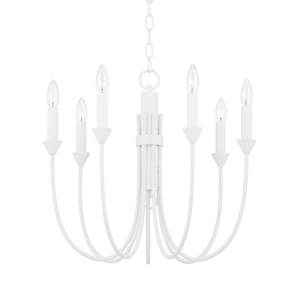 Cate`s large swooping arms give the piece a presence while still feeling open and airy at the same time. Whether as a simple single sconce or a breathtaking18-light chandelier, each smooth arm holds a solitary bulb that emits a warm glow. Make a bold statement in Forged Iron or keep things beautifully clean in White Gesso.