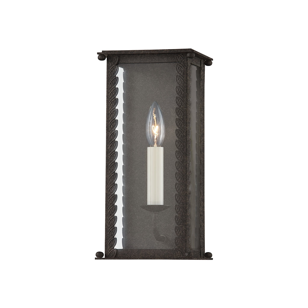 Zuma embraces its surroundings, taking cues from the natural world to inform its captivating silhouette. This candelabra style cage light features a delicate leaf detail climbing up the edges, revealing demure finials on each corner. Clear glass allows you to admire the candlestick lights clearly. Available in French iron or verdigris finish. Available as a one, two, or three-light wall sconce, and pendant in two sizes.