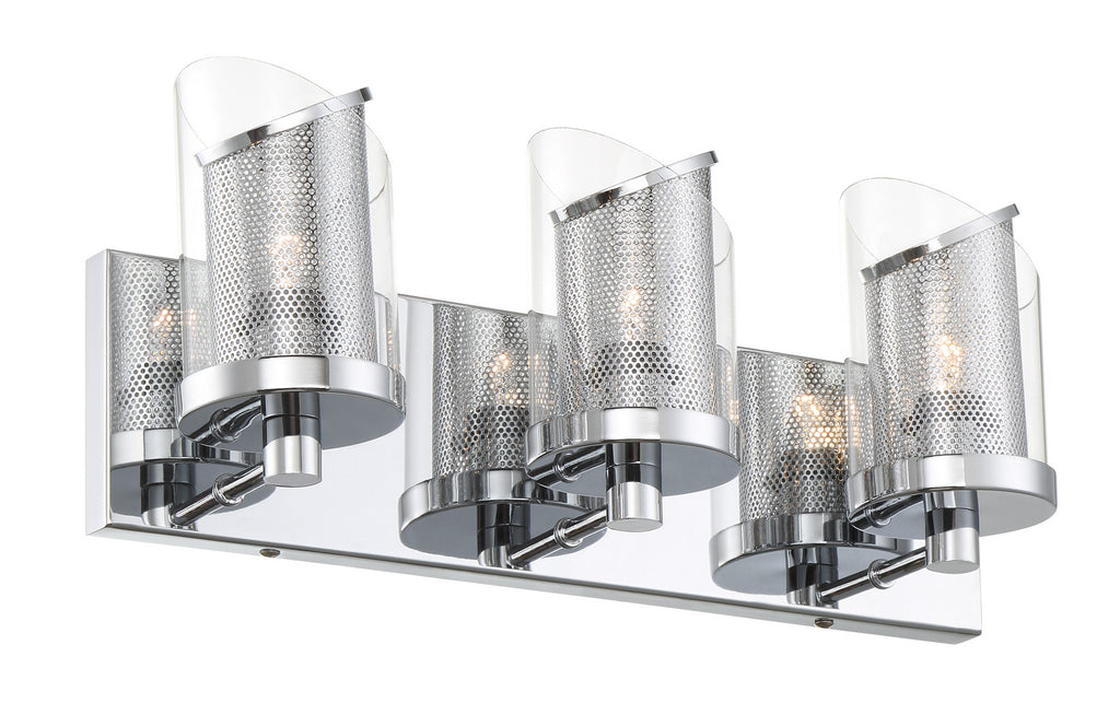 It's clear that you're someone who likes to look at things from a different perspective. So here's a creation that you can turn either way you like - up or down. The glass and chrome mesh shades are captive but can be rotated to show off any angle you desire. Chrome, clear glass and the minimalistic geometry are expressions of simplicity, but the real beauty in this fixture, as in life, is the option to follow your whims.
