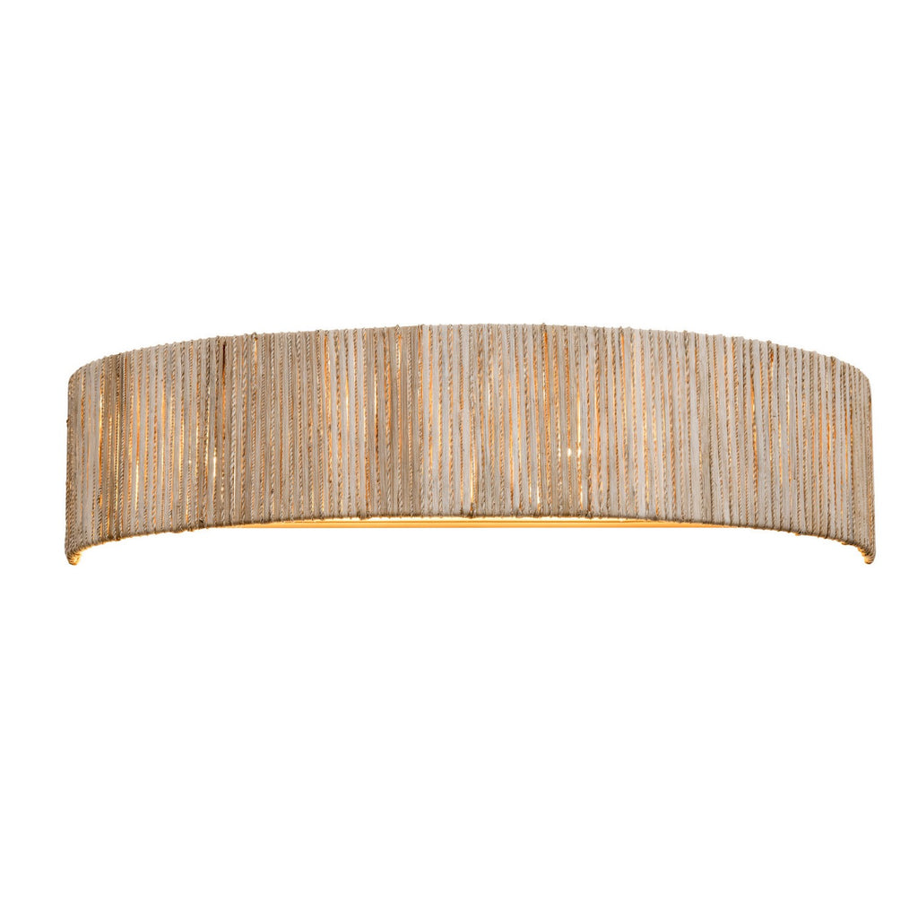 Inspired by the flowering plant of the same name - as featured in the painting by Mary Vaux Walcott, found in the collections of the Smithsonian American Art Museum- Jacob's Ladder by Varaluz rises to meet even the most discerning design tastes. An identifying feature of this plant is its foliage, with its densely packed leaf stems that bear small, fern-like leaflets, that rise along the stem. The Jacob's Ladder collection similarly features a stunning handwoven, alternating, natural, sustainable rattan and abaca rope layering. In a dark room, the backlighting on the rope has a starry night, twinkle effect. Hand crafted from 70% recycled steel. Low-VOC French Gold finish.