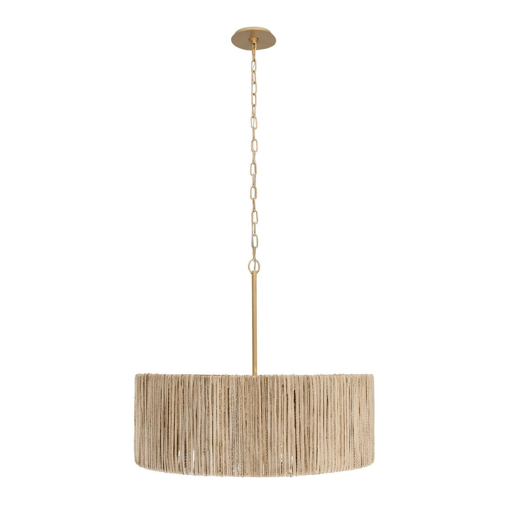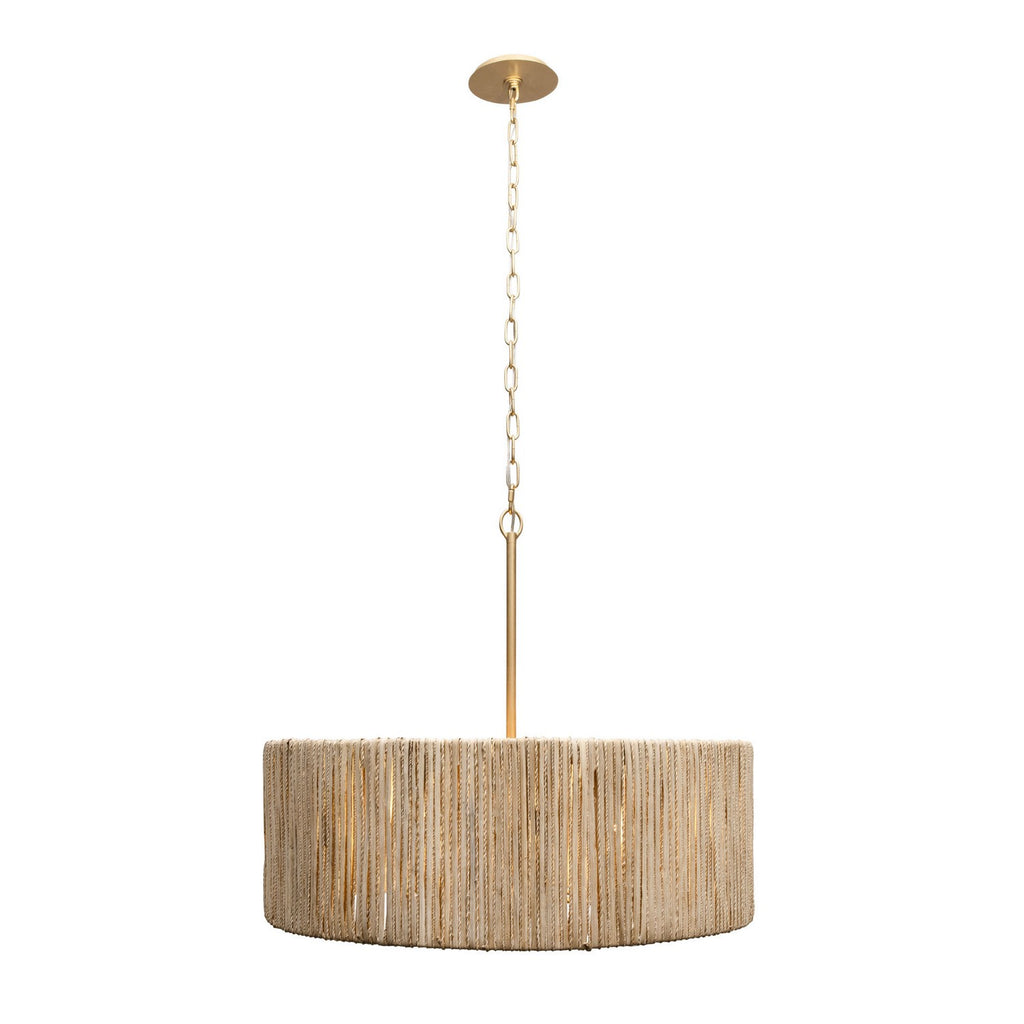 Inspired by the flowering plant of the same name - as featured in the painting by Mary Vaux Walcott, found in the collections of the Smithsonian American Art Museum- Jacob's Ladder by Varaluz rises to meet even the most discerning design tastes. An identifying feature of this plant is its foliage, with its densely packed leaf stems that bear small, fern-like leaflets, that rise along the stem. The Jacob's Ladder collection similarly features a stunning handwoven, alternating, natural, sustainable rattan and abaca rope layering. In a dark room, the backlighting on the rope has a starry night, twinkle effect. Hand crafted from 70% recycled steel. Low-VOC French Gold finish.