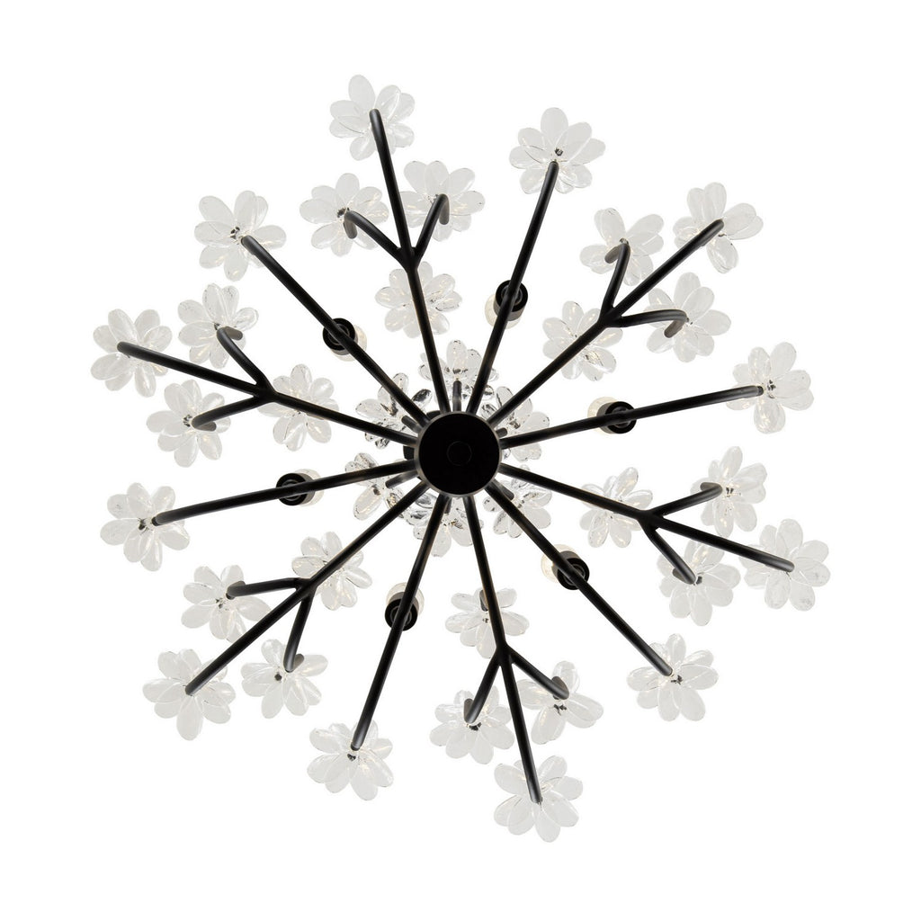 When you first see it aglow with its fine intricacies, it may not show, but the Wildflower collection started its path to existence thanks to Mary V. Walcott's Oconee-Bells discovered in the Smithsonian Libraries and Archives Special Collections. Taking center stage is a touch of Danish modern on top of midcentury. Wildflower combines delicate, handmade ice glass flower petals, with equally delicate wispy hand-forged and recycled steel tubing and metal work. Available in gold or black.