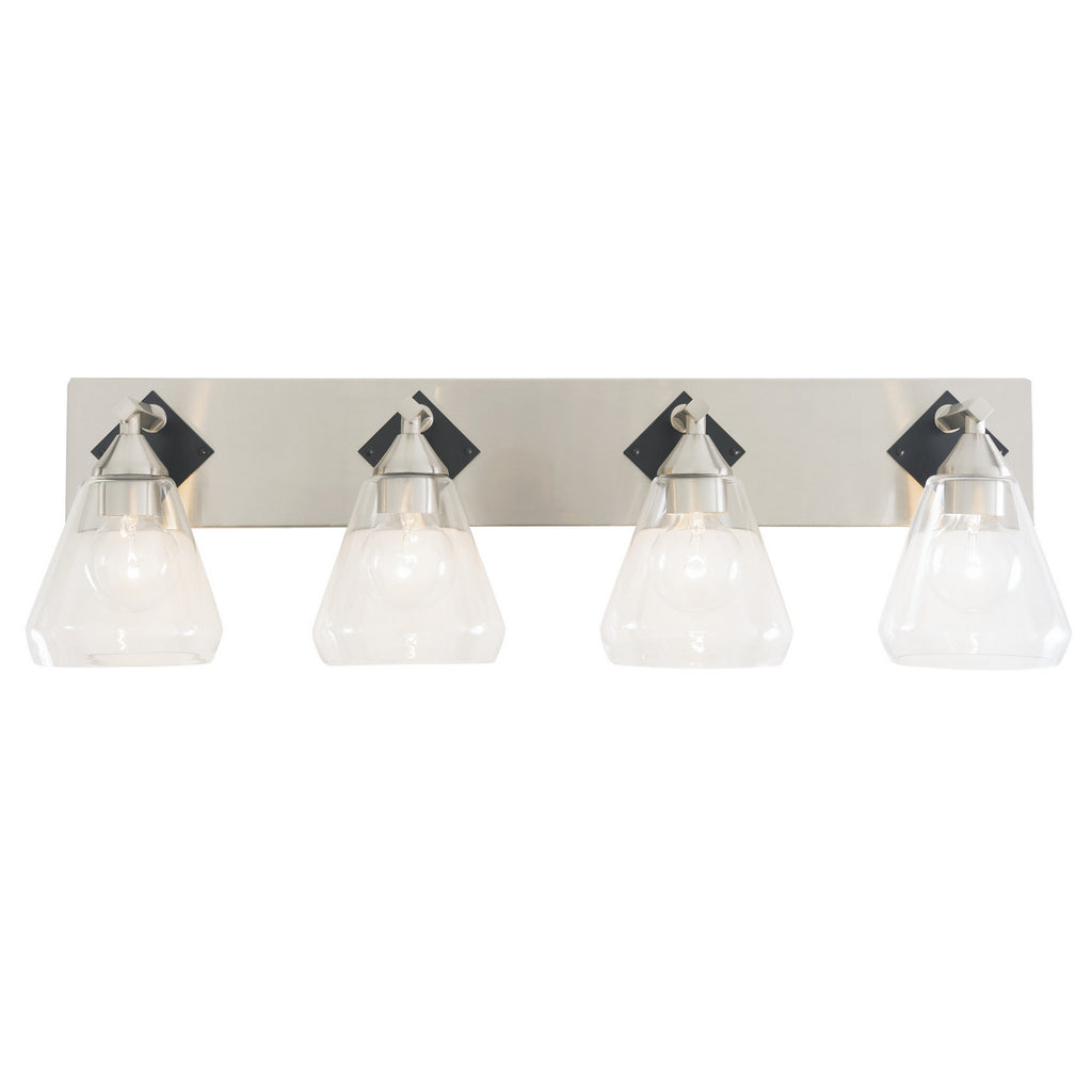 Illuminate a powder room or other intimate space with a duality of power and grace. Industrial-style riveted panels convey a masculine strength while thick, feminine glass curves cradle light. With mixed finishes and a luscious shine, the Prestige collection adds approachable chic to contemporary industrial spaces and modern farmhouse looks.