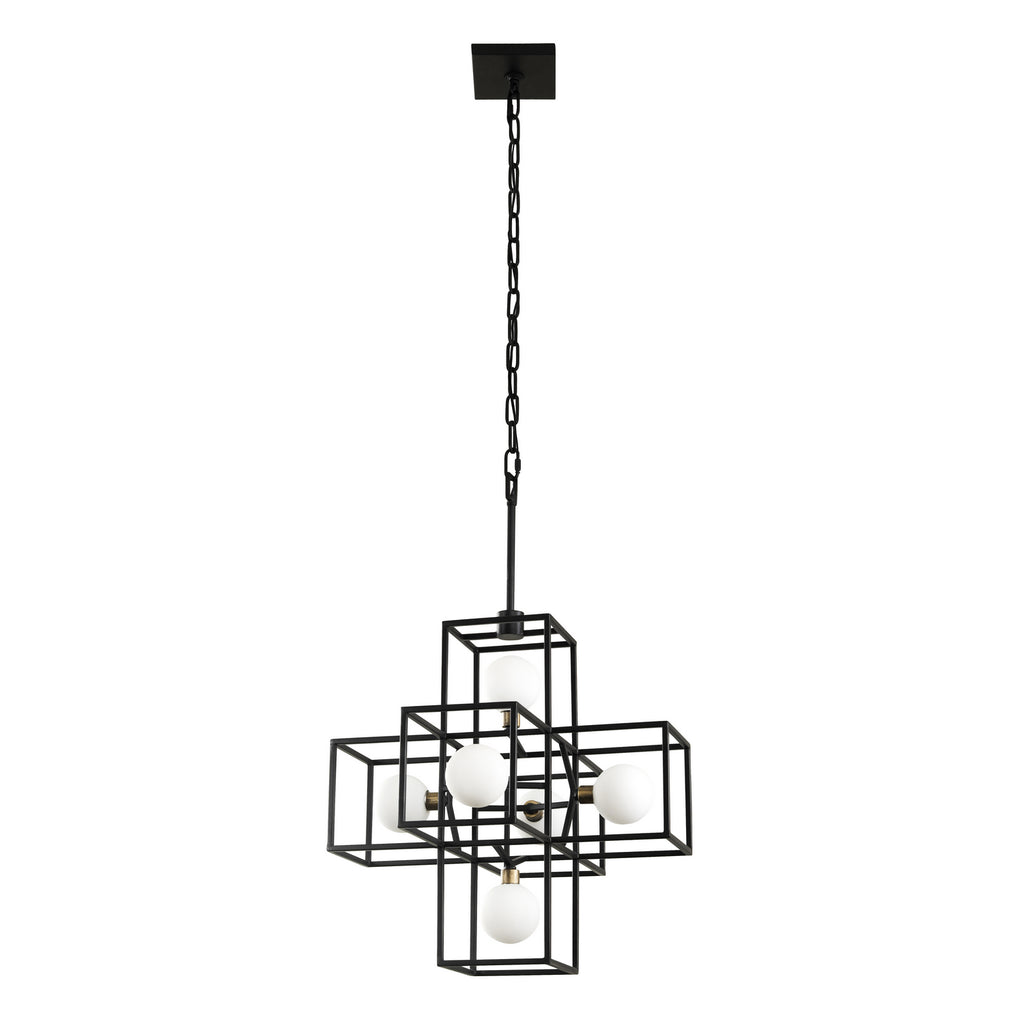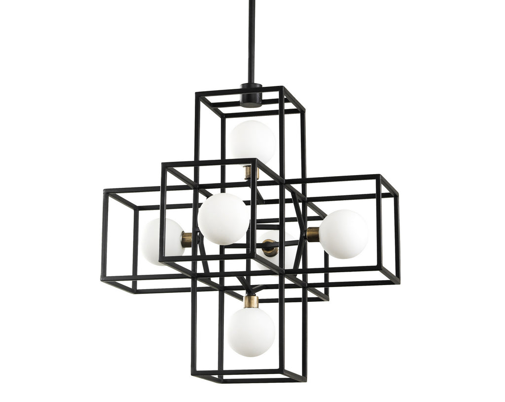 Plaza is the ultimate post-modern marvel. Inspiration comes from a nod to 1970's grand hotel and public space fixtures. Its gorgeous recycled matte opal glass globes are perfectly balanced on hand-forged geometric bars.