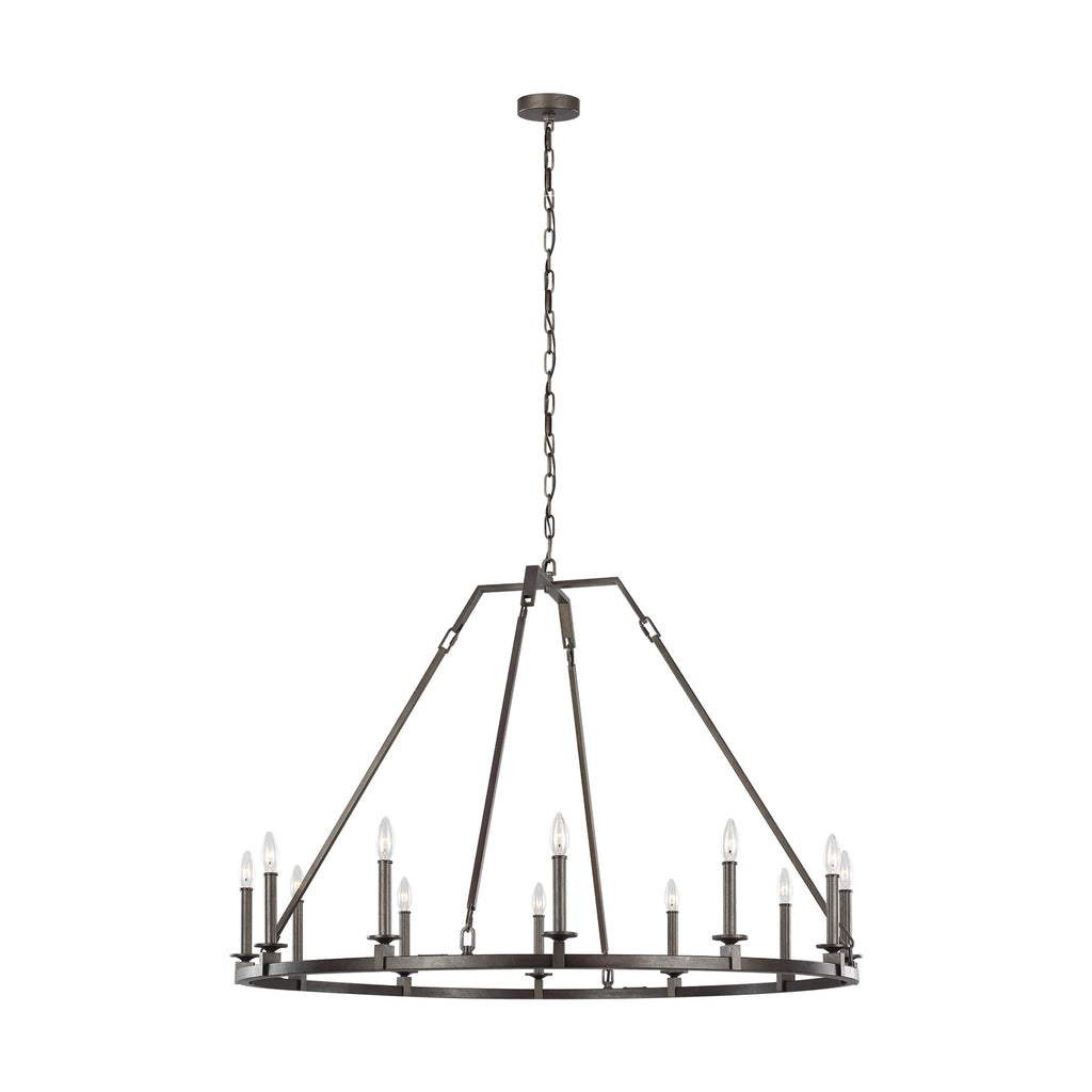 The transitional Landen features chandeliers with either our industrial Smith Steel finish details. This modern farmhouse collection is versatile enough to fit within a wide range of decor from farmhouse to urban loft. A grand 53" high two-tier chandelier makes a dramatic statement. All fixtures in the Landen collection are damp-rated, however, the chandeliers with the Antique Forged Iron/Painted Aged Brass finish include optional glass candle covers to protect the lamping from moisture.