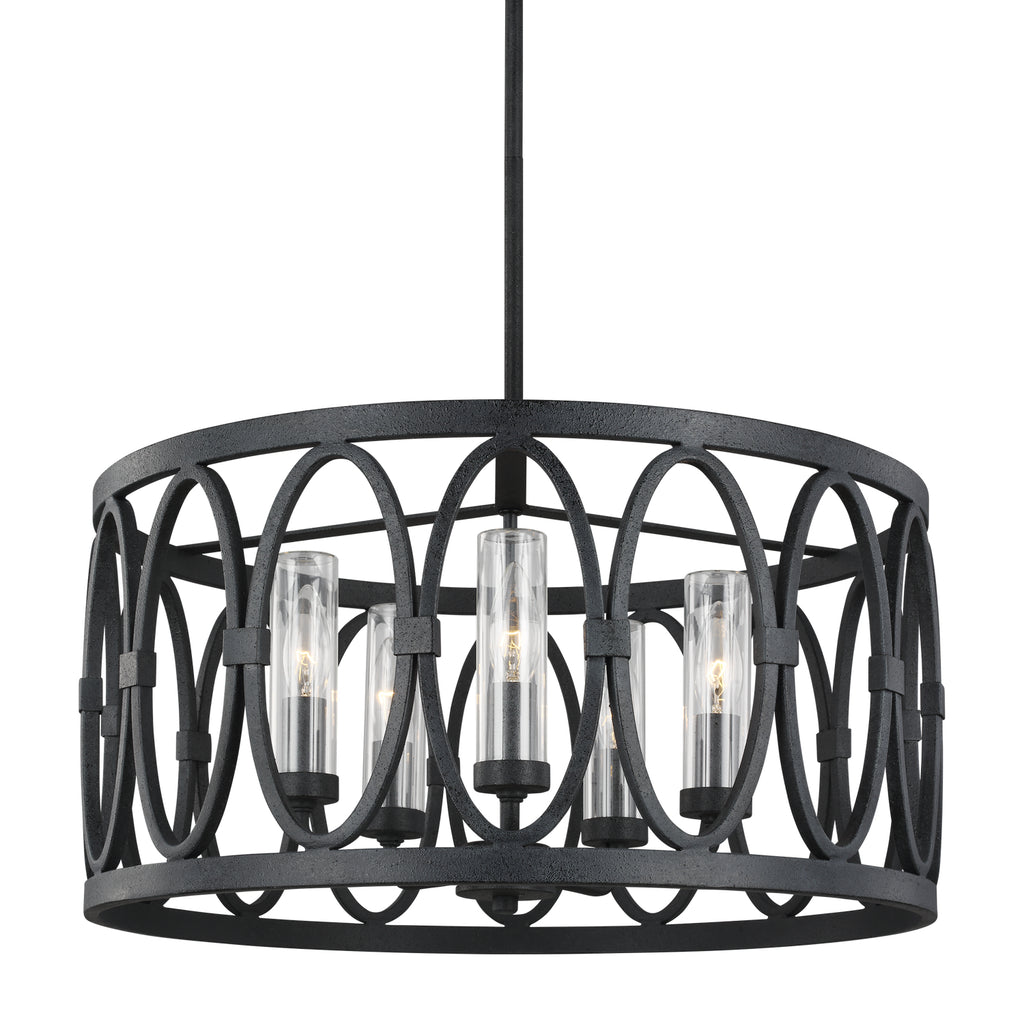 The Patrice five light outdoor chandeliers in dark weathered zinc creates a warm and inviting welcome presentation for your home's exterior. Patrice showcases Visual Comfort Studio' Collection's unwavering commitment to robust construction and craftsmanship. Using our NEW Deep Abyss finish, Patrice is heavily textured and tactile, appearing as though it was pulled from a shipwreck. This humble design with its oval motifs is fitting for a wide range of decor. Patrice also features three outdoor fixtures with a rustic Dark Weathered Zinc finish. The outdoor chandeliers include glass candle covers to protect the lamping. All Patrice chandeliers are damp-rated for use in indoor and covered outdoor spaces.