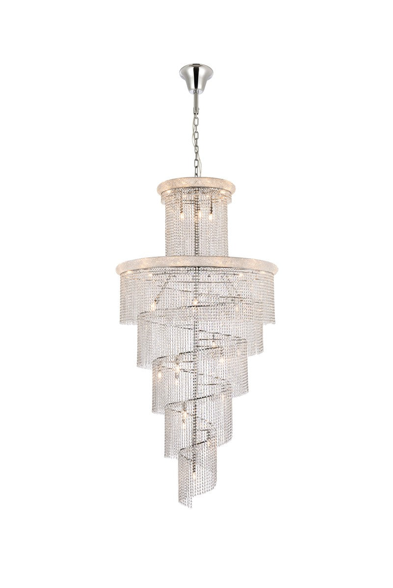 Mesmerizing crystals cascade in a waterfall of glamorous light in the Spiral collection. The magnificent chrome- or gold-spiraled frame is adorned with shimmering elegant-cut, royal-cut, Swarovski Spectra, or Swarovski Elements crystal strands. Bring glistening light to your foyer, living room, or dining room with a Spiral hanging fixture.