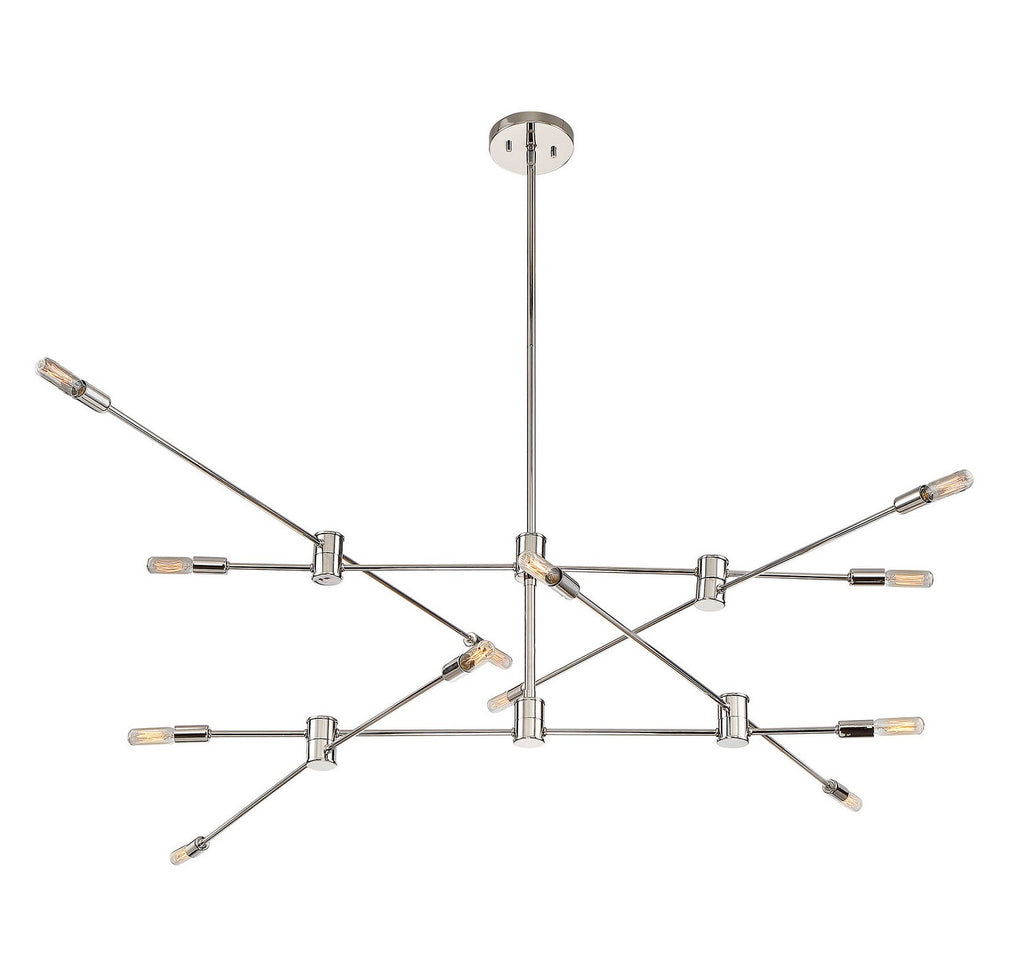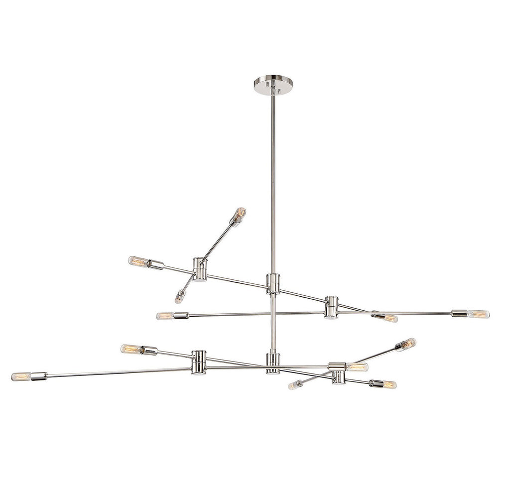 The open, structured look of the Savoy House Lyrique 12-light two-tier chandelier is a great choice for today's stylish interiors. The arms are adjustable, allowing you to create custom looks and change them on the fly. Finished in polished nickel. The hanging height is adjustable and this fixture can be mounted on a sloped ceiling. Chandeliers can be used in a wide variety of spaces, including but certainly not limited to dining rooms, living rooms, great rooms, bedrooms, kitchens, foyers, offices and even bathrooms! Bulbs not included. Try using stylized bulbs such as tubular shape for a different look! The polished nickel finish can be matched with nickel hardware or mixed with hardware in other finishes. Lyrique is perfect for contemporary style spaces and any room that has an edgy touch. When you choose a Savoy House lighting fixture, you can be certain you've selected a piece that will withstand the test of time.