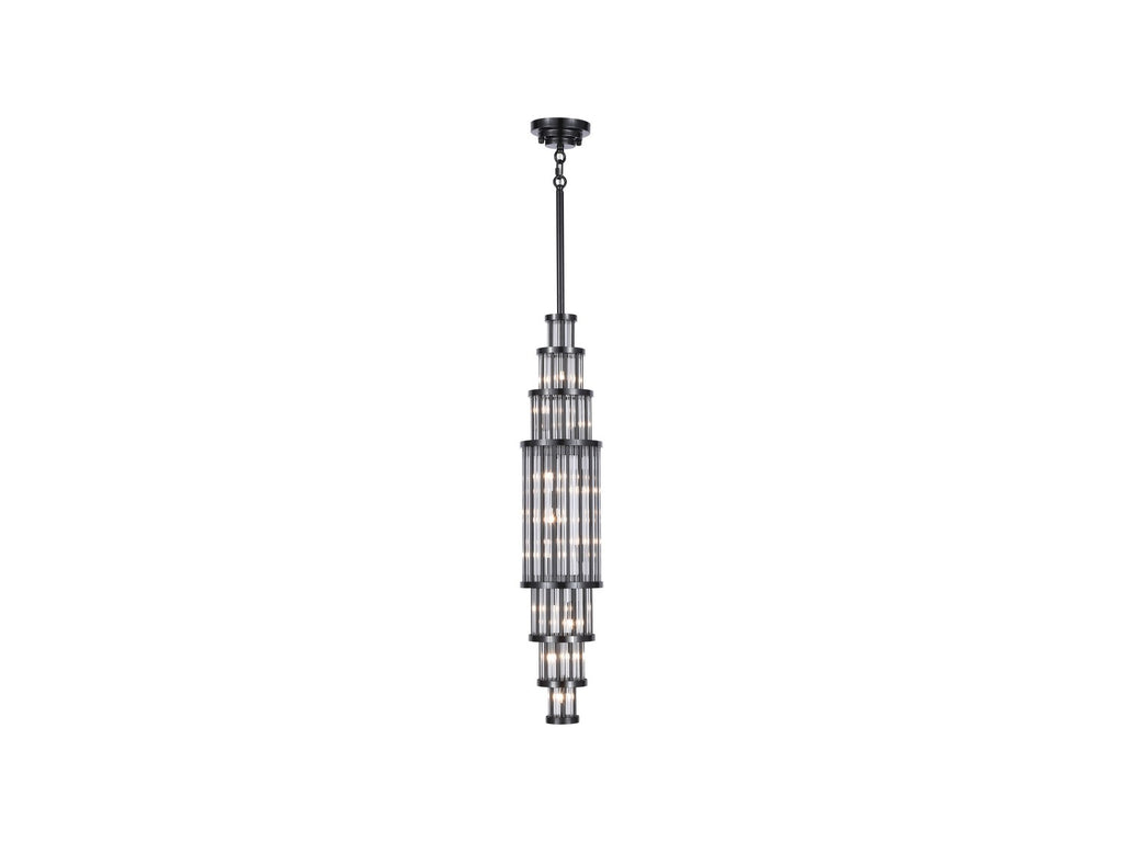 A lavish nod to the glitz and glamour of the roaring '20s: the art-deco-inspired frame of the Waldorf Collection is ringed with stunning crystal cylinders interspersed with modern metal columns.