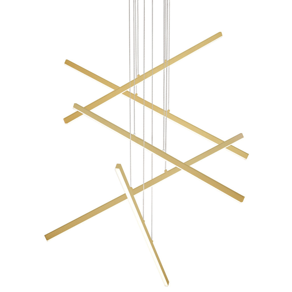The linear lights can be configured at different heights and angles to create distinct sculptural orientations. Ordered into clean parallels or jumbled in playful asymmetry, Vega can be customized to complement any space.