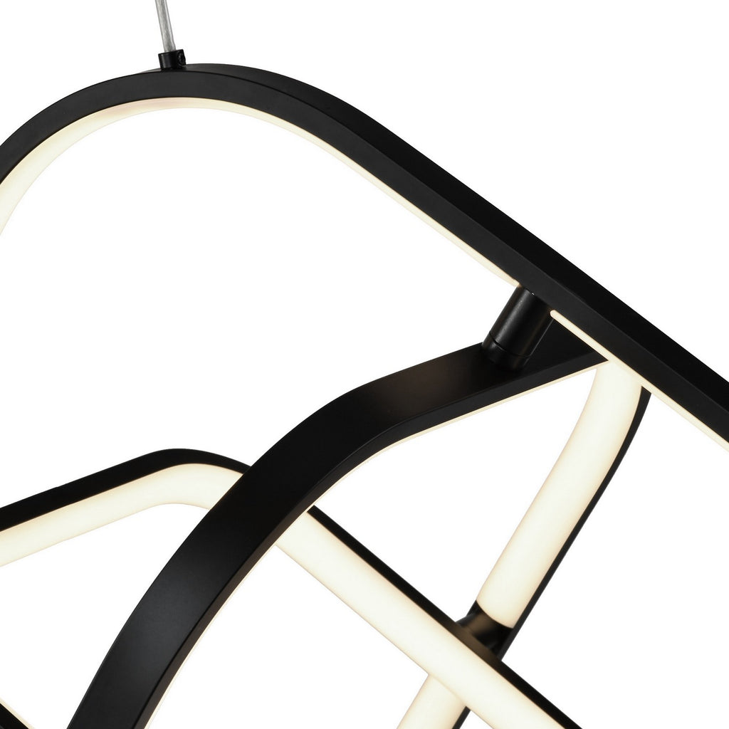 The Sienna Collection LED chandelier has a unique square shape with circular edges. (The interior can be rotated to any desired position). This collection is finished is a rich semi gloss black. Has a pushpin system on canopy for easy height adjustment.