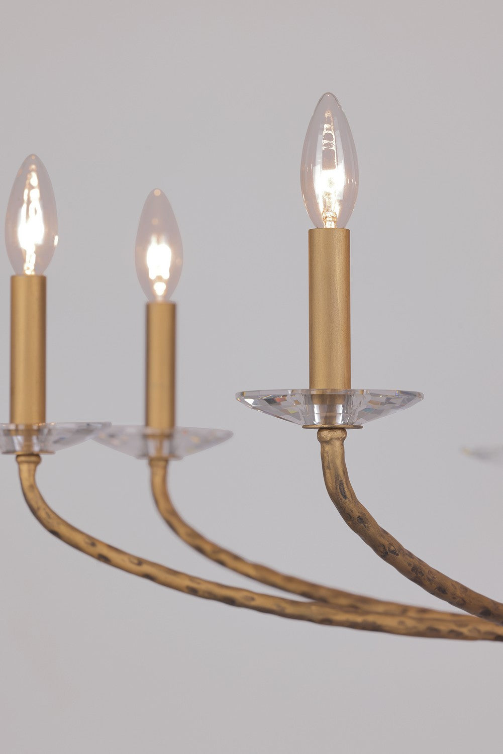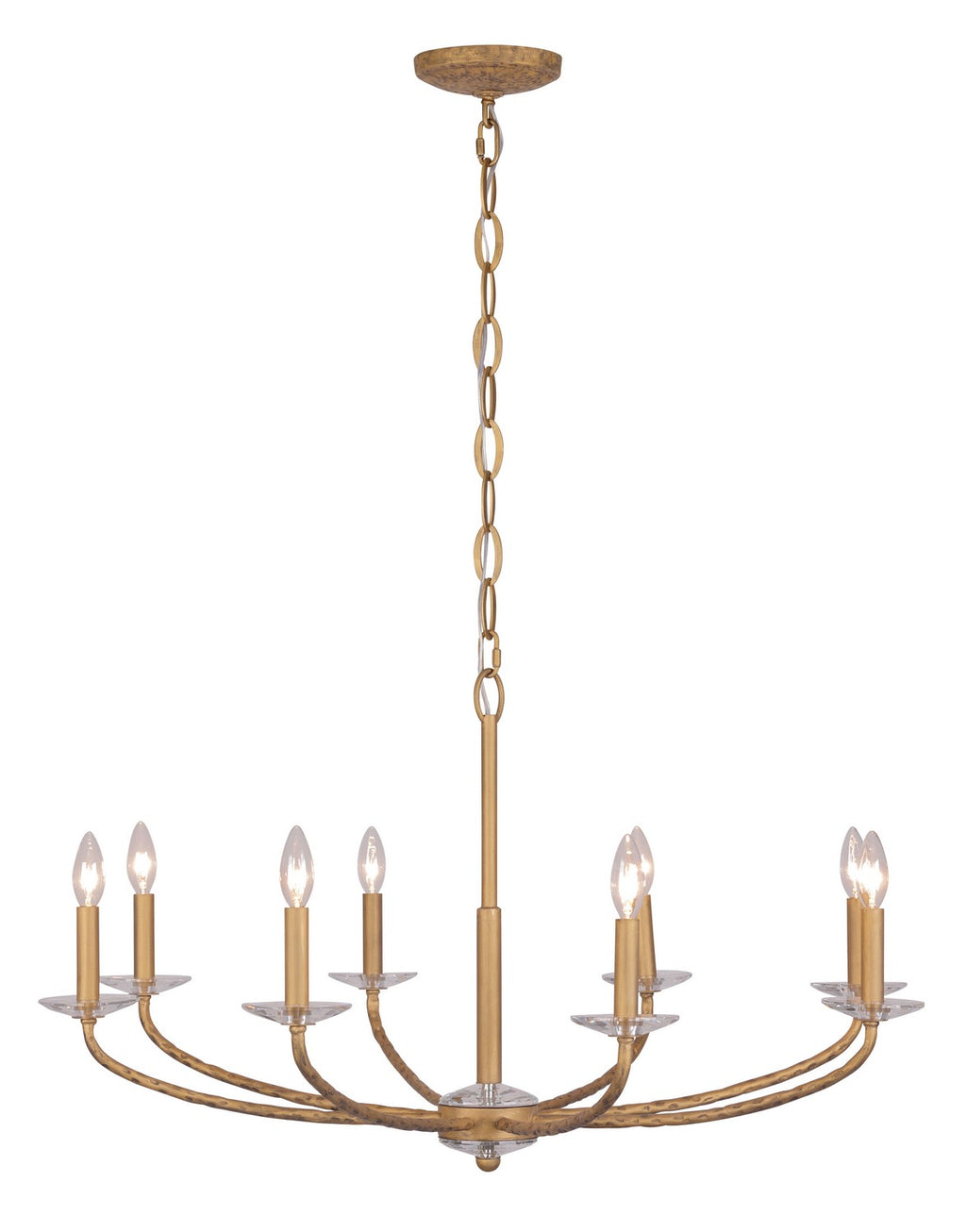 8 Light Chandelier in Ashen Gold with Hammered Arms and Canopy and Clear Faceted Crystal Accent Bobeche