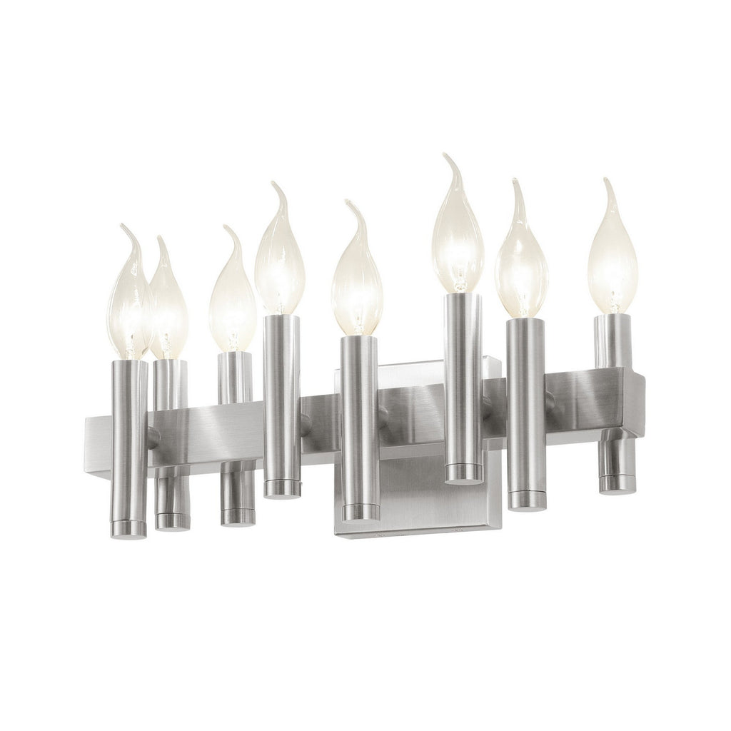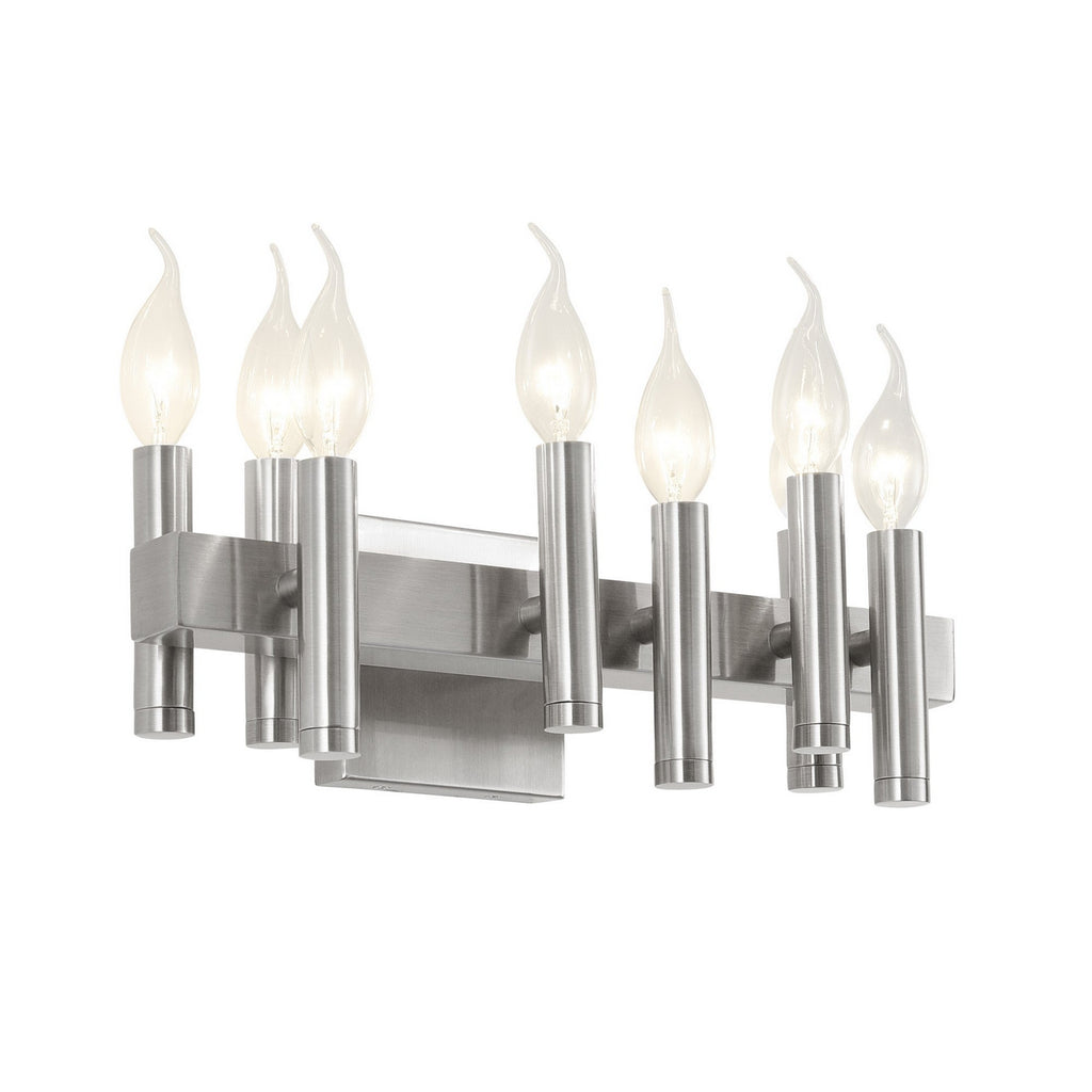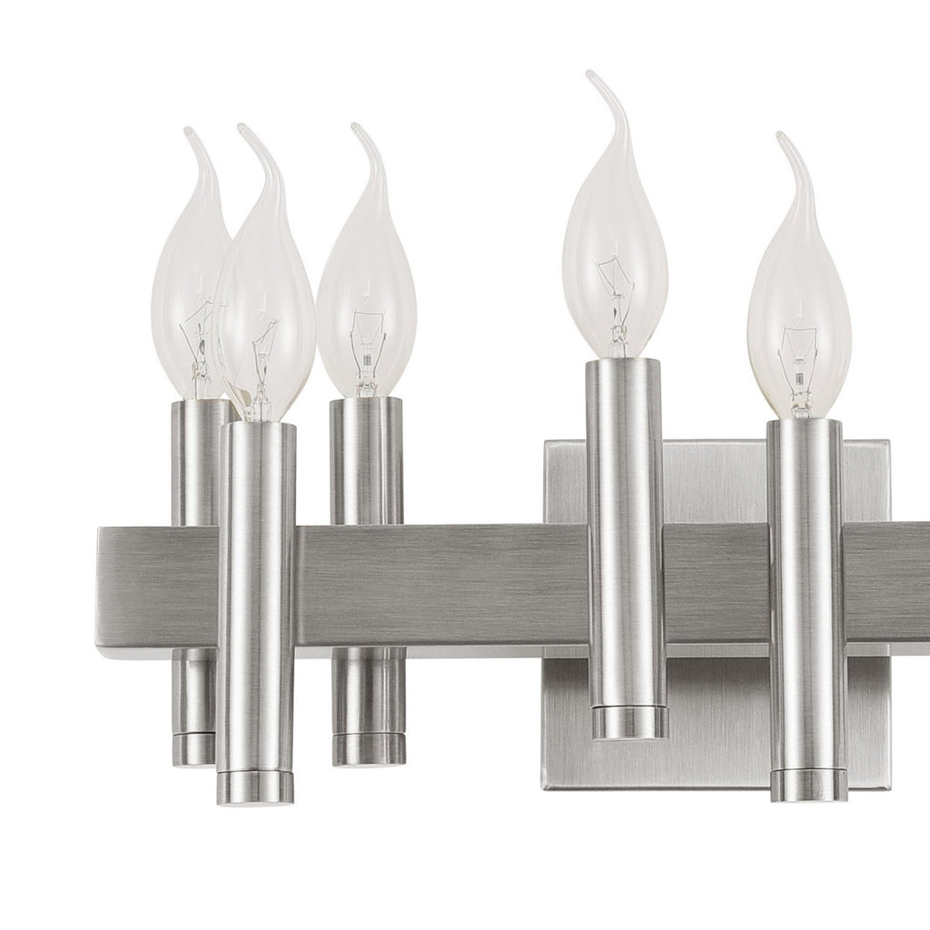 Light floats in flame-shaped orbs above sleek brushed brass or nickel tapers, issuing a warm and welcoming invitation. With refined lines and regal strength, Collette can be easily adorned with unique seasonal décor, adding the finishing touch in the transformation of a home into a modern castle.
